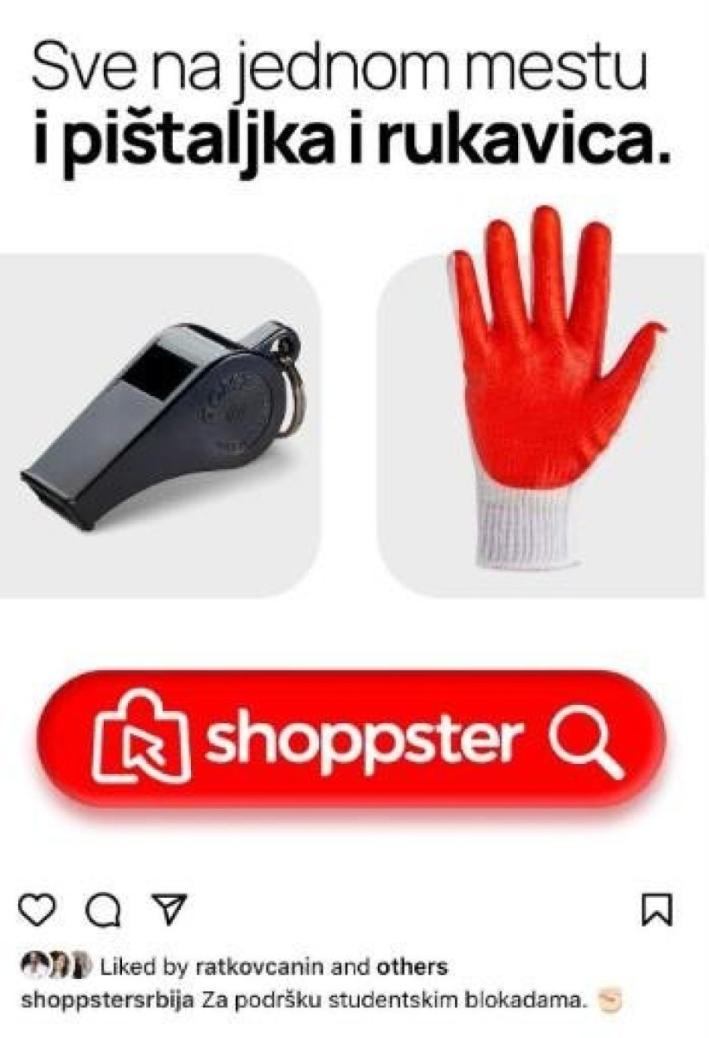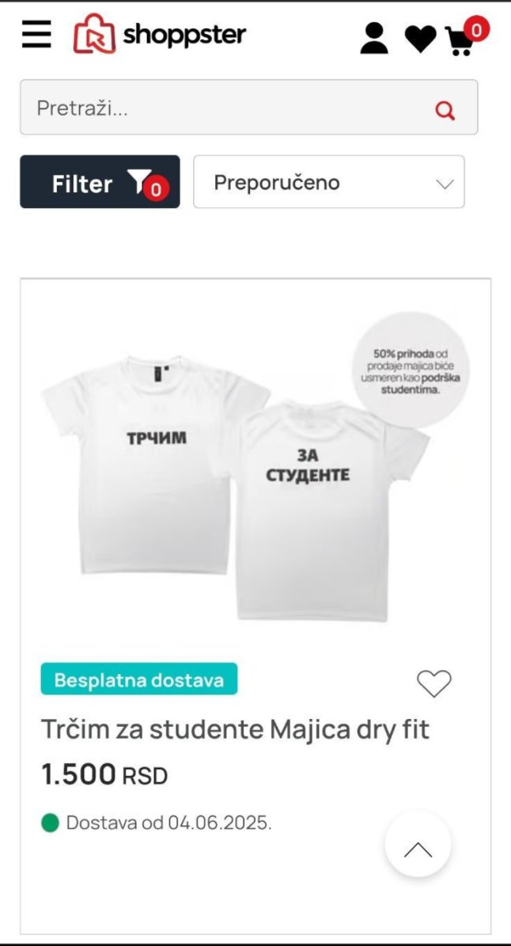 Trgovinski lanac Šopster još uvek koristi blokadere foteljaše za prikupljanje novca, pa je tako ovoga puta na njihovom sajtu osvanula majica sa natpisom "Trčim za studente".