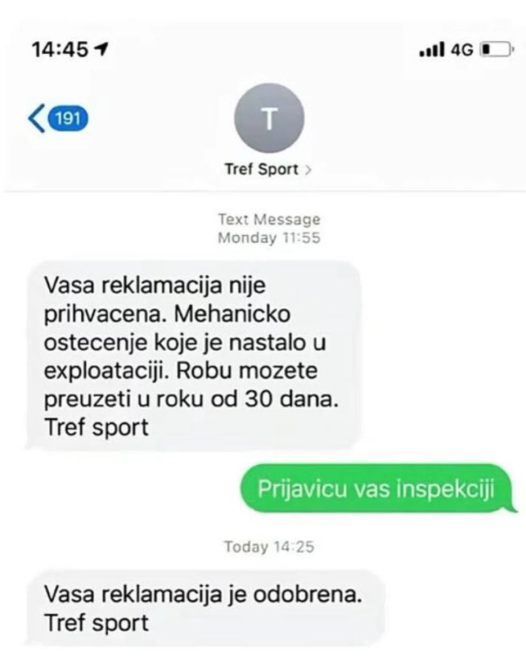 Nakon toga, verovali ili ne, reklamacija je prihvaćena bet ikakvog objašnjenja. To, sudeći po komentarima na mrežama, dovodi u pitanje da li neka zakonska regulativa nije ispunjena, pa se kao posledica prijavljivanja inspekciji može naći potencijalni problem.