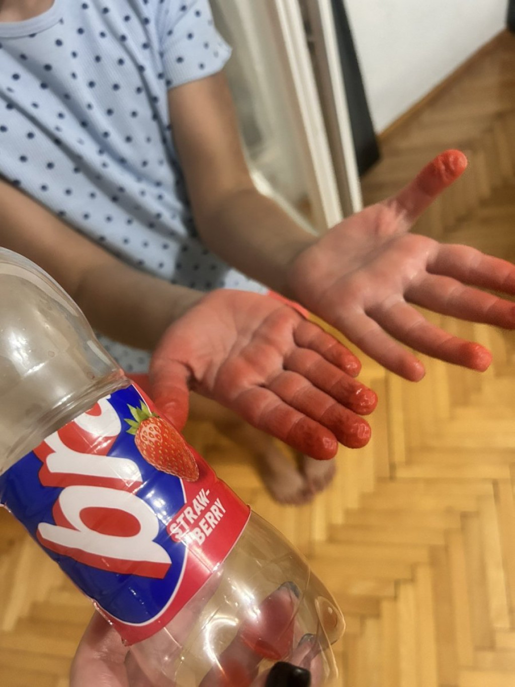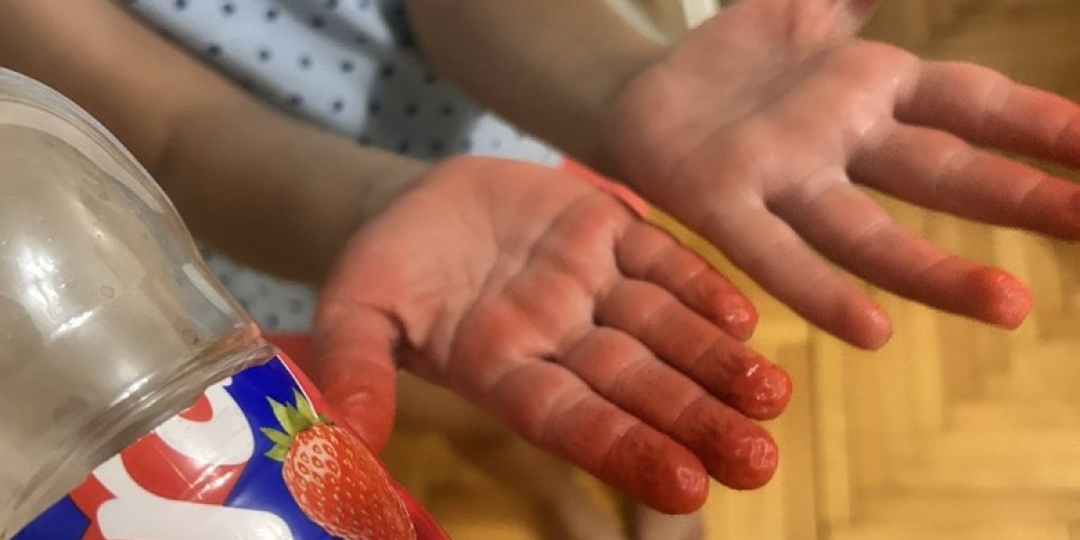 - Kupila sam malu flašicu soka od jagode unuci dok smo šetali. Posle nekog vremena videla sam da joj je jezik potpuno crven. Znala sam da je u pitanju napitak pun hemije i veštačkih boja i od voća nema ni traga. Posle toga sam joj kupila vodu i sok smo sklonile sa strane. Uveče je uzela pravi neki ekspriment sa tiktok, zabavan. Cvet od vate. Trebala joj je crvena tečnost. Setila sam se da nam je ostao "bravo" sok i taman sam joj dala da ga iskoristi. Natapala je vatu u sok i pravila ružu. Kada je završila igru, bila sam šokirana kada sam joj videla ruke - priča D.M. i dodaje: