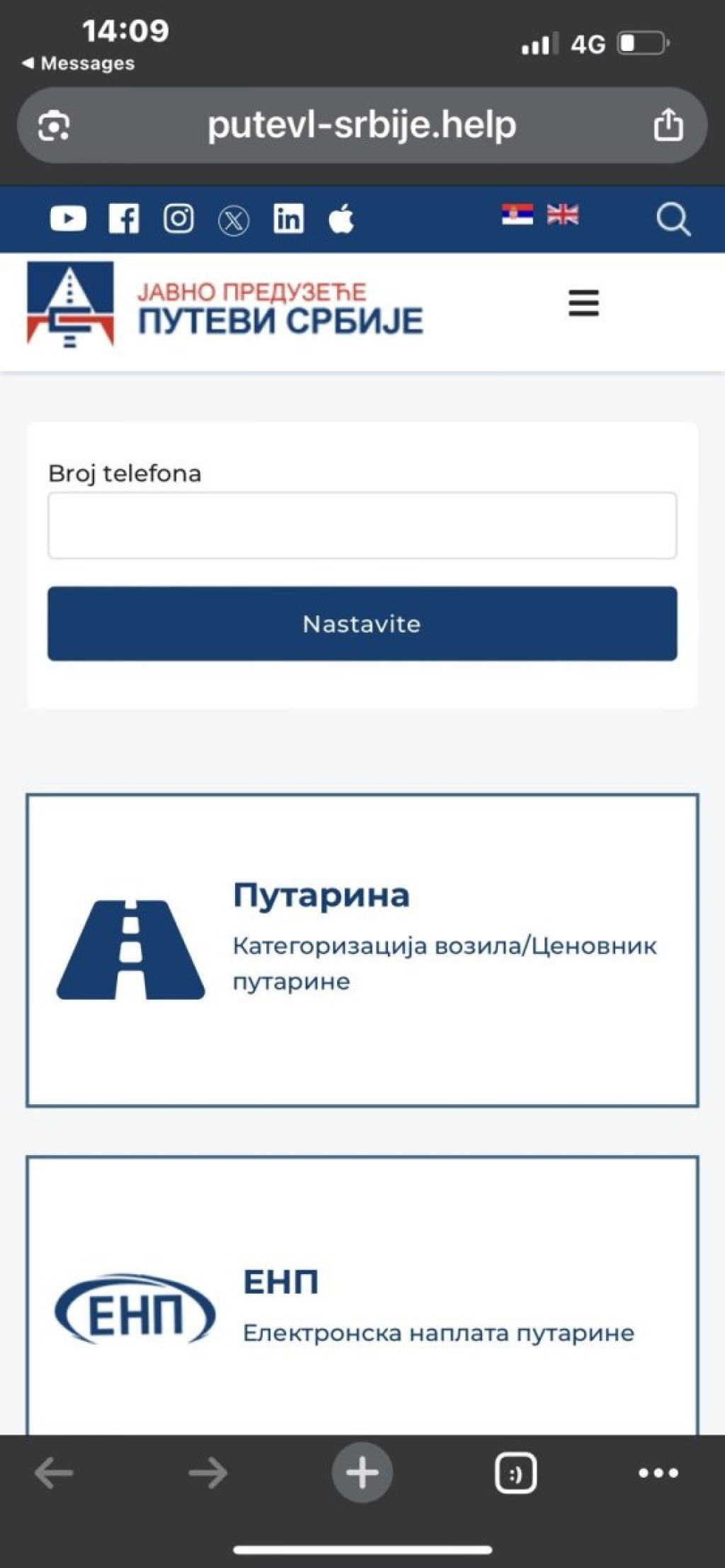 Sadržaj drugog SMS-a daleko je kraći, a naša čitateljka je greškom otvorila link koji je ostavljen u prilogu. Na sreću, on je vodio do stranice koja je nalik zvaničnoj stranici ovog preduzeća i potrebno je još par koraka kako bi se lični podaci zloupotrebili.