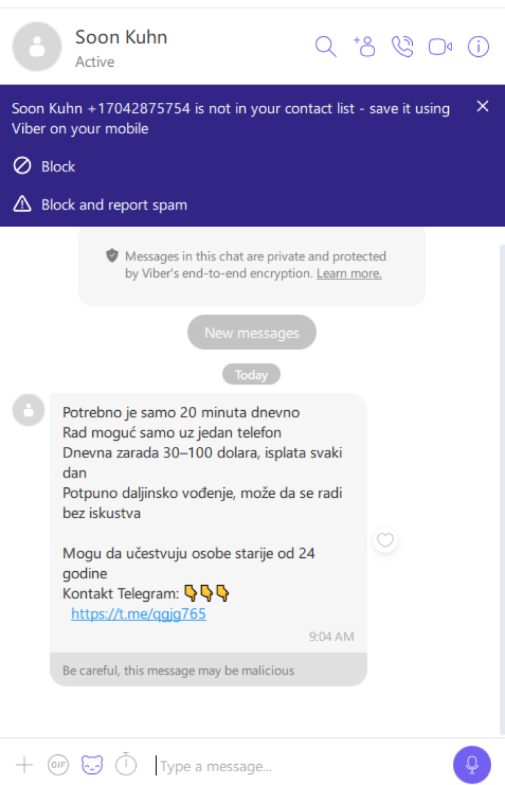 Naime, na Viberu su ponovo počele da pristižu lažne ponude da posao sa "dobrom zaradom", ali uz uslov da ste stariji od 24 godine.