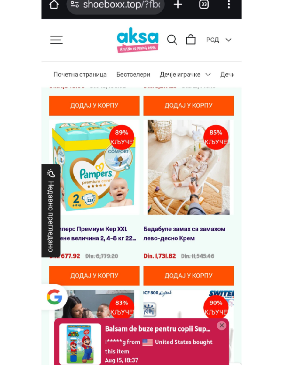 Ono što trenutno kruži društvenim mrežama, jeste lažni sajt prodavnice "Aksa" koji nudi neverovatno povoljne cene proizvoda za bebe i decu.