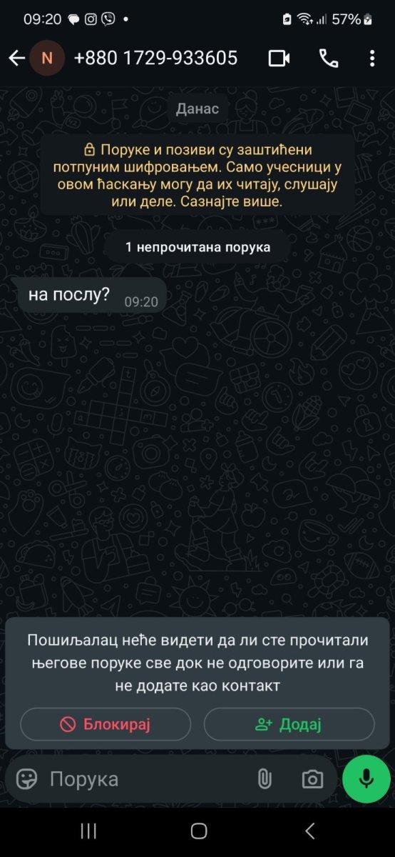 - Lako prepoznam SMS prevare, ali ovoga puta nisam obratila pažnju na broj, pošto je poruka stigla na aplikaciji "Whats App" i to normalno, na ćirilici. Srećom, uočila sam pozivni broj iz inostranstva i izbegla dalje neprijatnosti - priča nam ona.