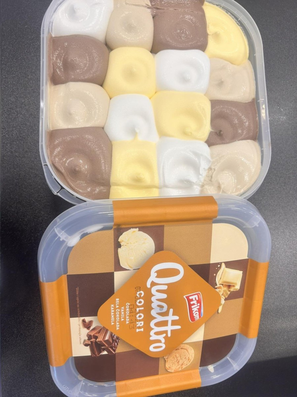 Verovali ili ne, umesto 750 grama porodičnog sladoleda Quattro colori, u pakovanju, pokazuje vaga, ima svega 714 grama. Da stvar bude još gora, kada se skine poklopac, težina je još manja.
