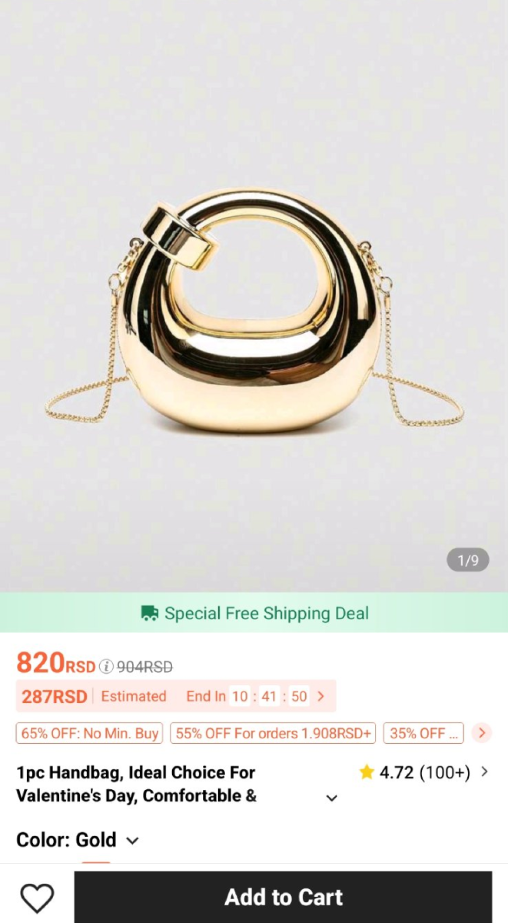 Jedna korisnica nedavno je podelila svoje neprijatno iskustvo sa popularnom onlajn prodavnicom Šejn, kada je umesto elegantne torbe većih dimenzija, koju je naručila za specijalnu priliku, u pošiljci dobila – minijaturnu zlatnu torbicu veličine šake.