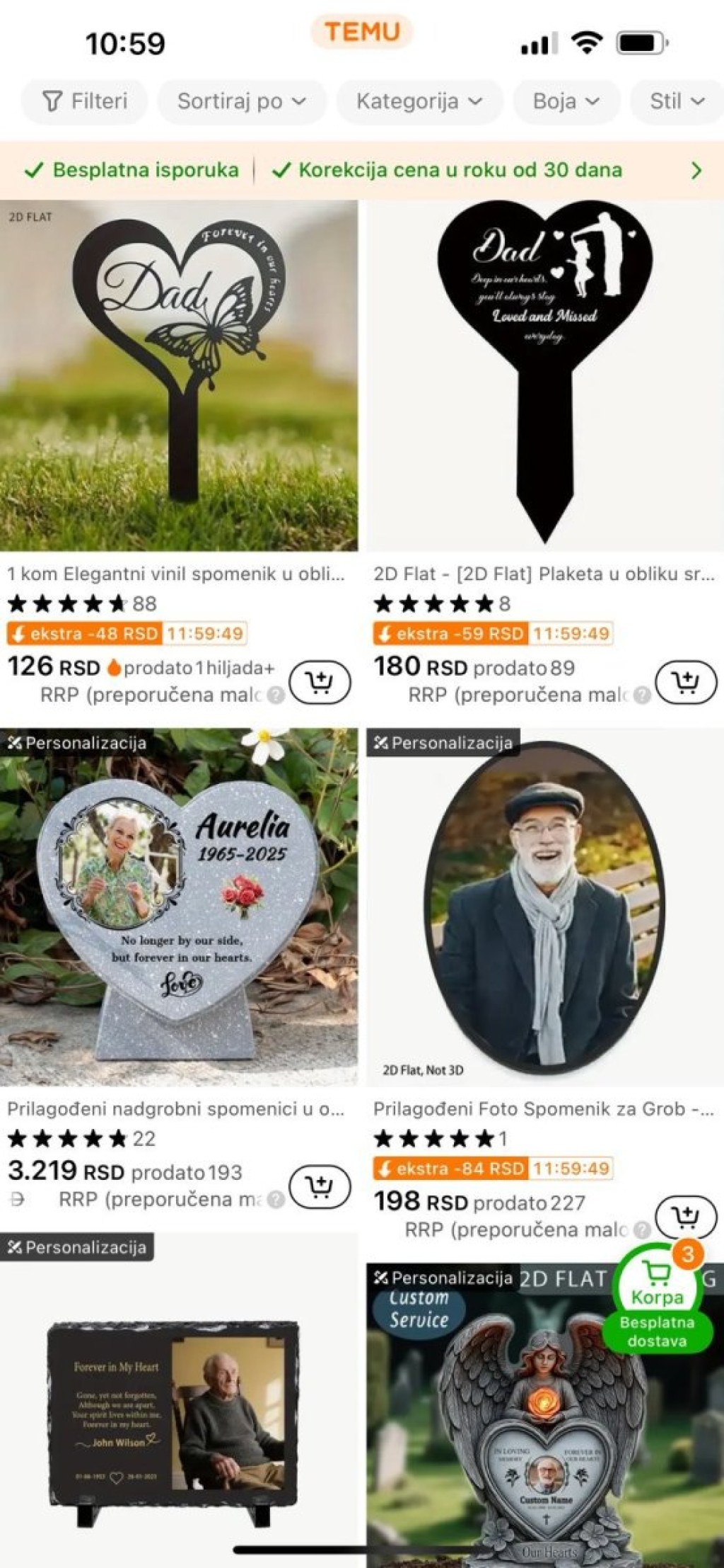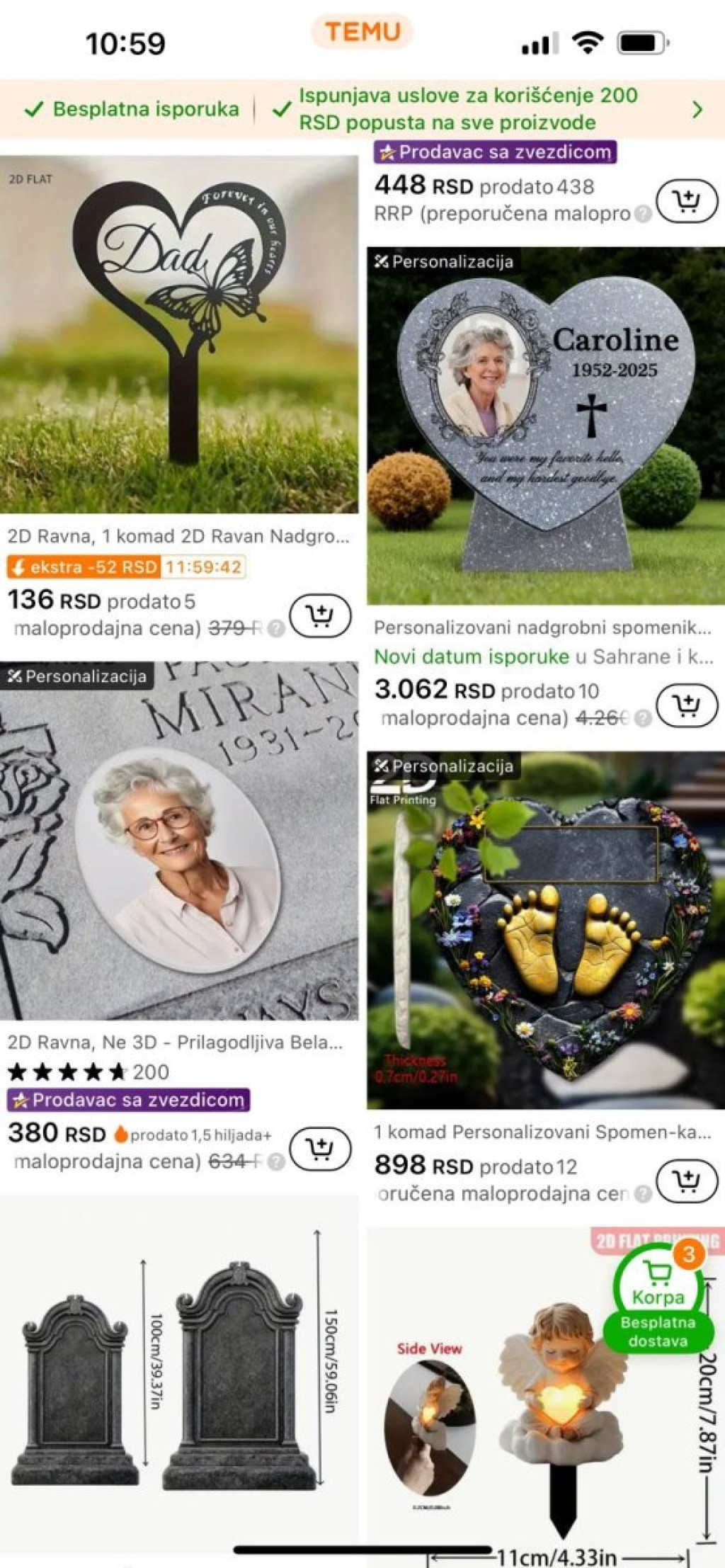 Nova bizarnost "Temu" aplikacije: Počeli da prodaju nadgrobne ploče (FOTO)