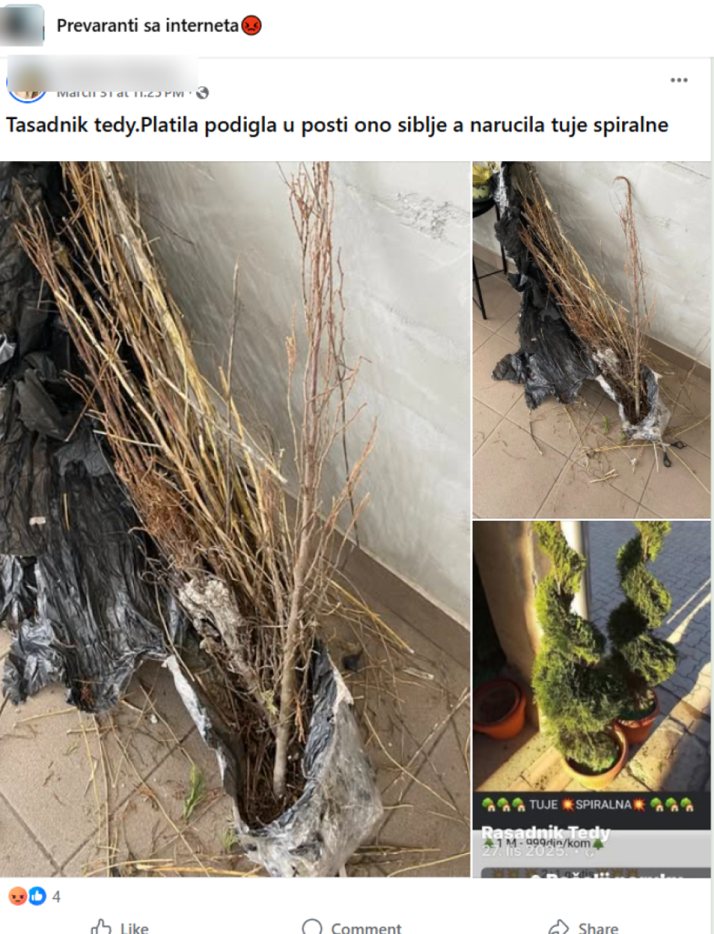 Srpkinja naručila spiralne tuje, a dobila suvo granje