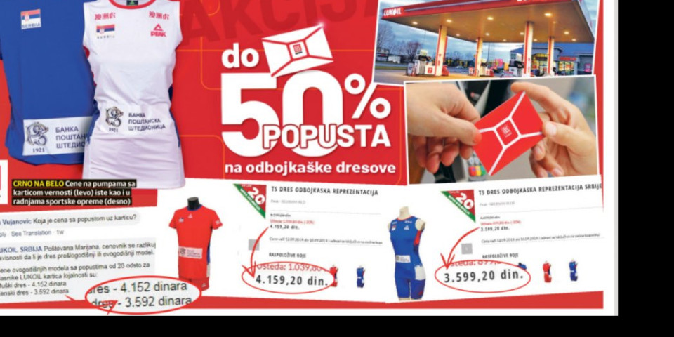 Naftna kompanija "Lukoil" služi se marketinškim prevarama kako bi navukla potrošače da koriste njihove lojalti kartice! Ovaj gigant se na sva usta reklamira da ukoliko imate ovu karticu, dobijate popust do 50 odsto na dresove muške i ženske odbojkaške reprezentacije, što je apsolutna laž.