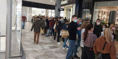 Iako je radno vreme skraćeno na samo dva sata, nikome nije palo na pamet da otkaže pomenutu akciju i automatski se stvorio nepregledan red koji se osim po holu tržnog centra prostirao i napolju.