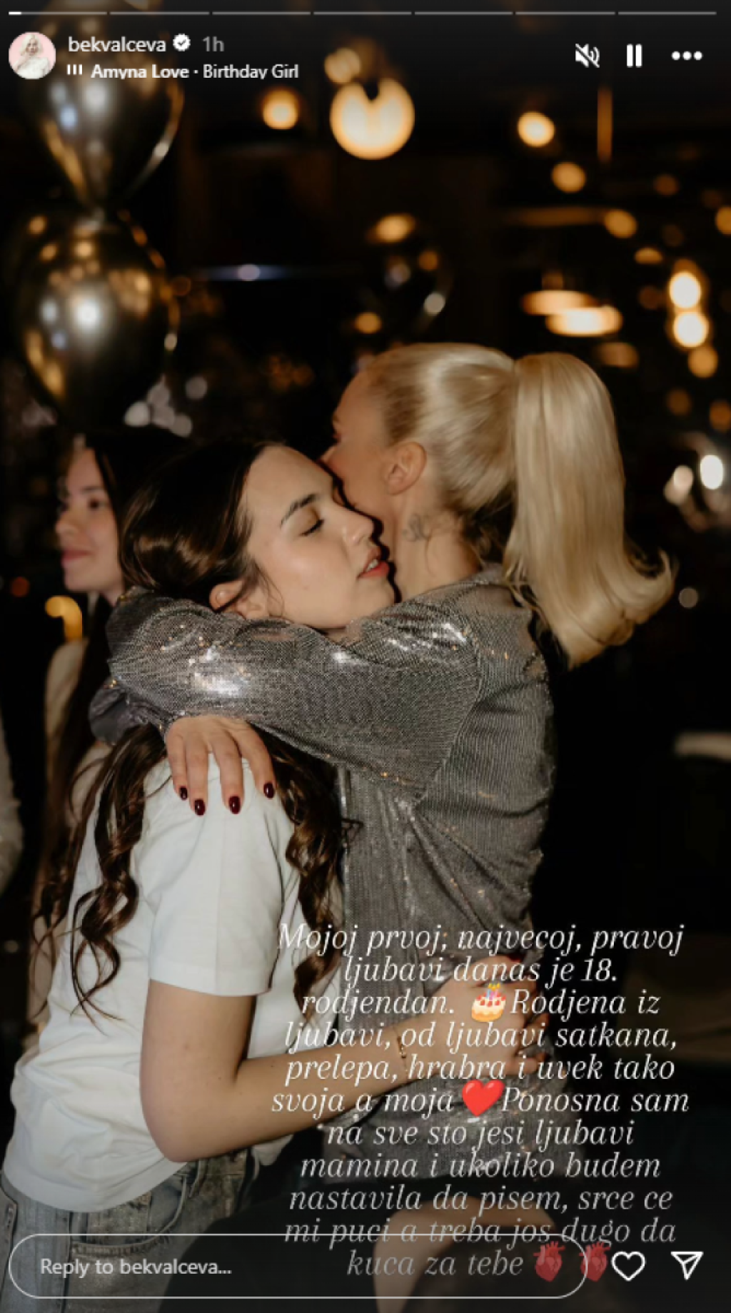 - Mojoj prvoj, najvećoj, pravoj ljubavi danas je 18. rođendan. Rođena iz ljubavi, od ljubavi satkana, prelepa, hrabra i uvek tako svoja, a moja. Ponosna sam na sve što jesi ljubavi mamina i ukoliko budem nastavila da pišem srce će mi pući, a treba još dugo da kuca za tebe.