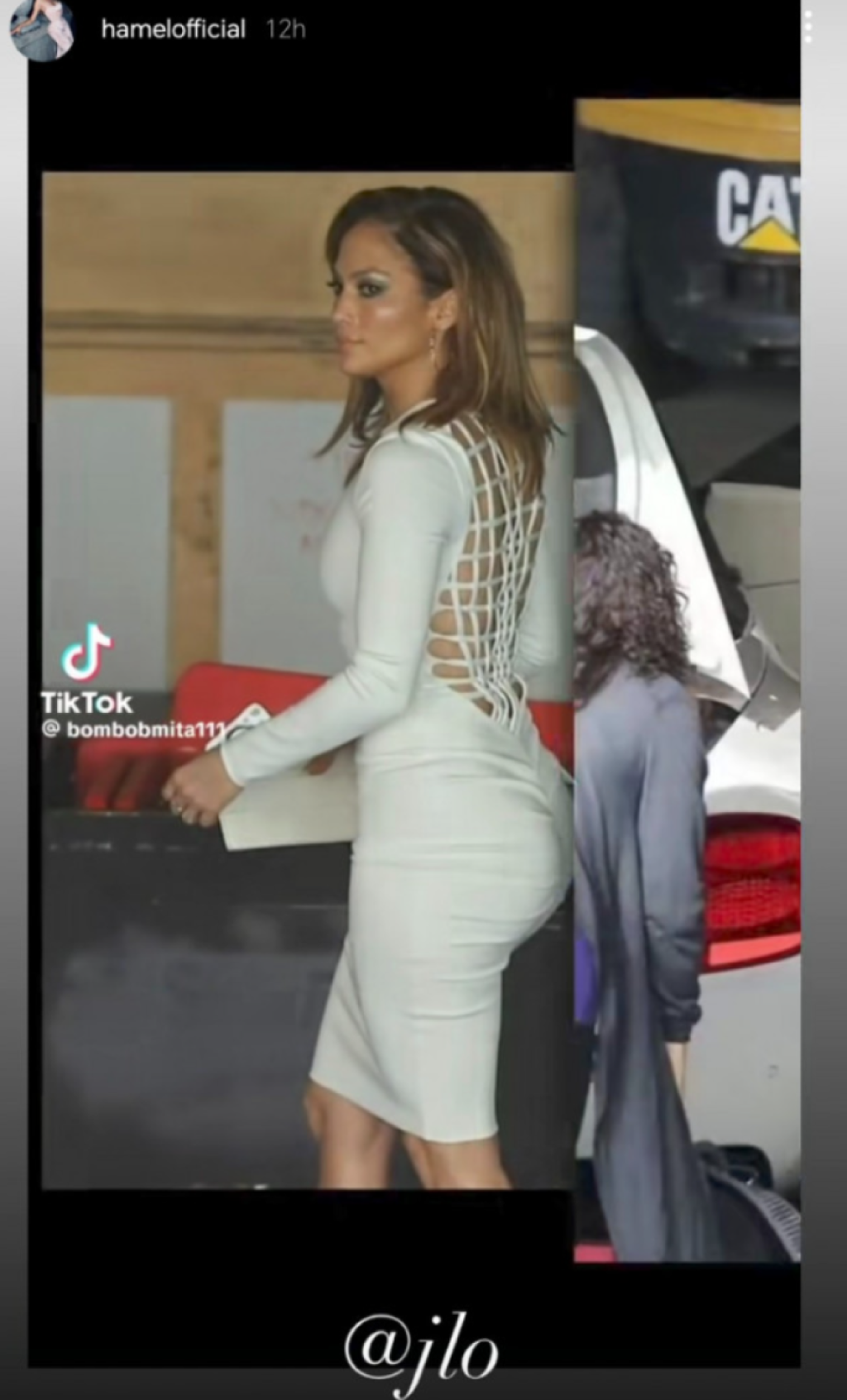Prelepim kreacijama Melina Džinović oduševila je i pevačicu Dženifer Lopez koja se pojavila u haljini sa njenim potpisom, što je uspešna dizajnerka podelila i na društvenim mrežama. Dženifer, naime, nosi Melininu haljinu bele boje. Reč je o modelu koji prati liniju tela. Haljina je okruglog izreza, dužine do kolena i sa dugačkim rukavima.