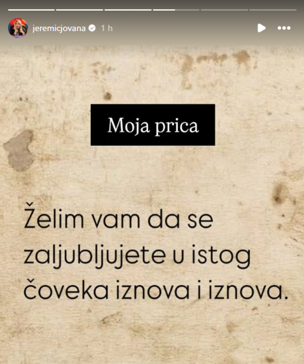 - Želim vam da se zaljubljujete u istog čoveka iznova i iznova - napisala je Jovana i pored toga dodala kratak komentar: