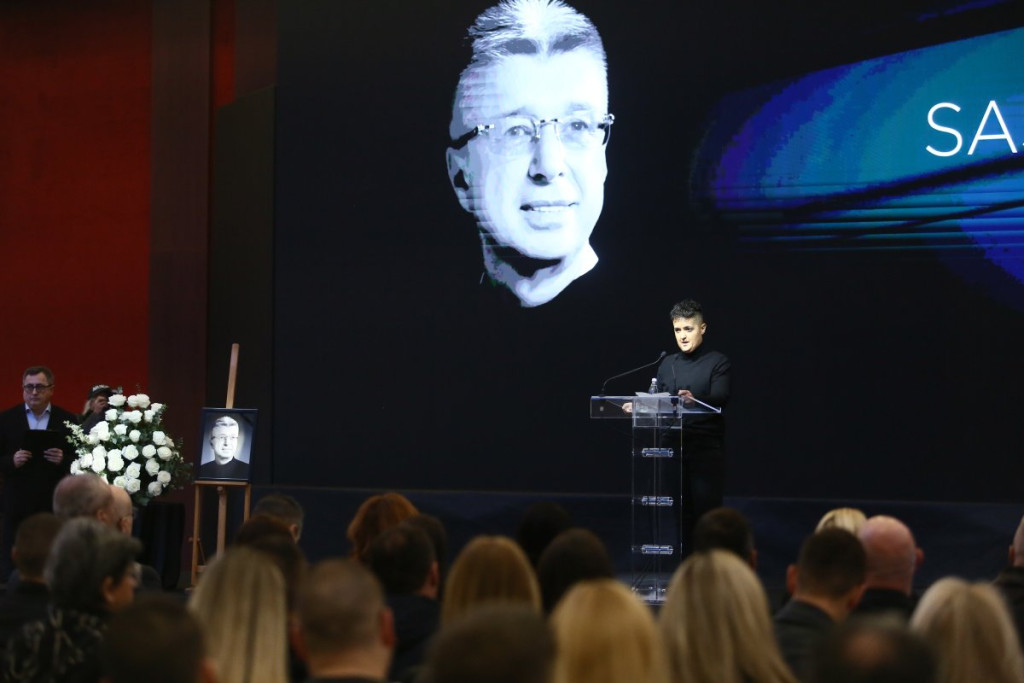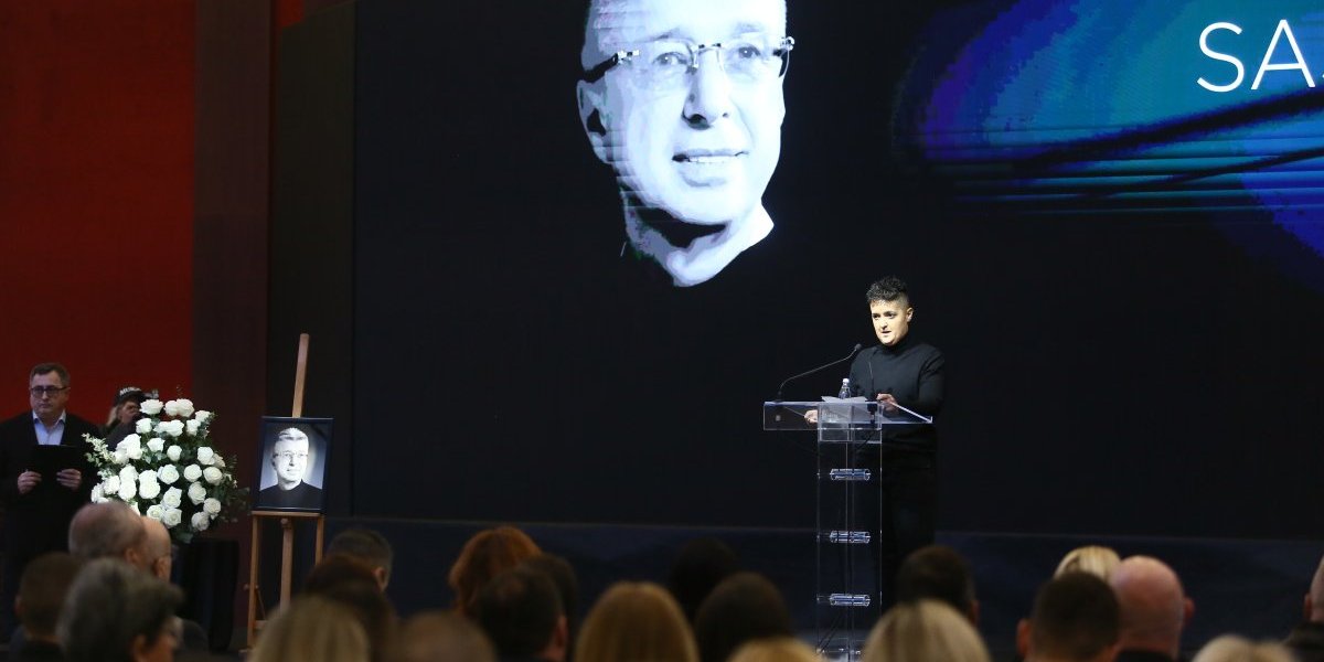 Na spomeniku pokojnog kreativnog direktora Granda Saše Popovića postavljena je njegova fotografija.