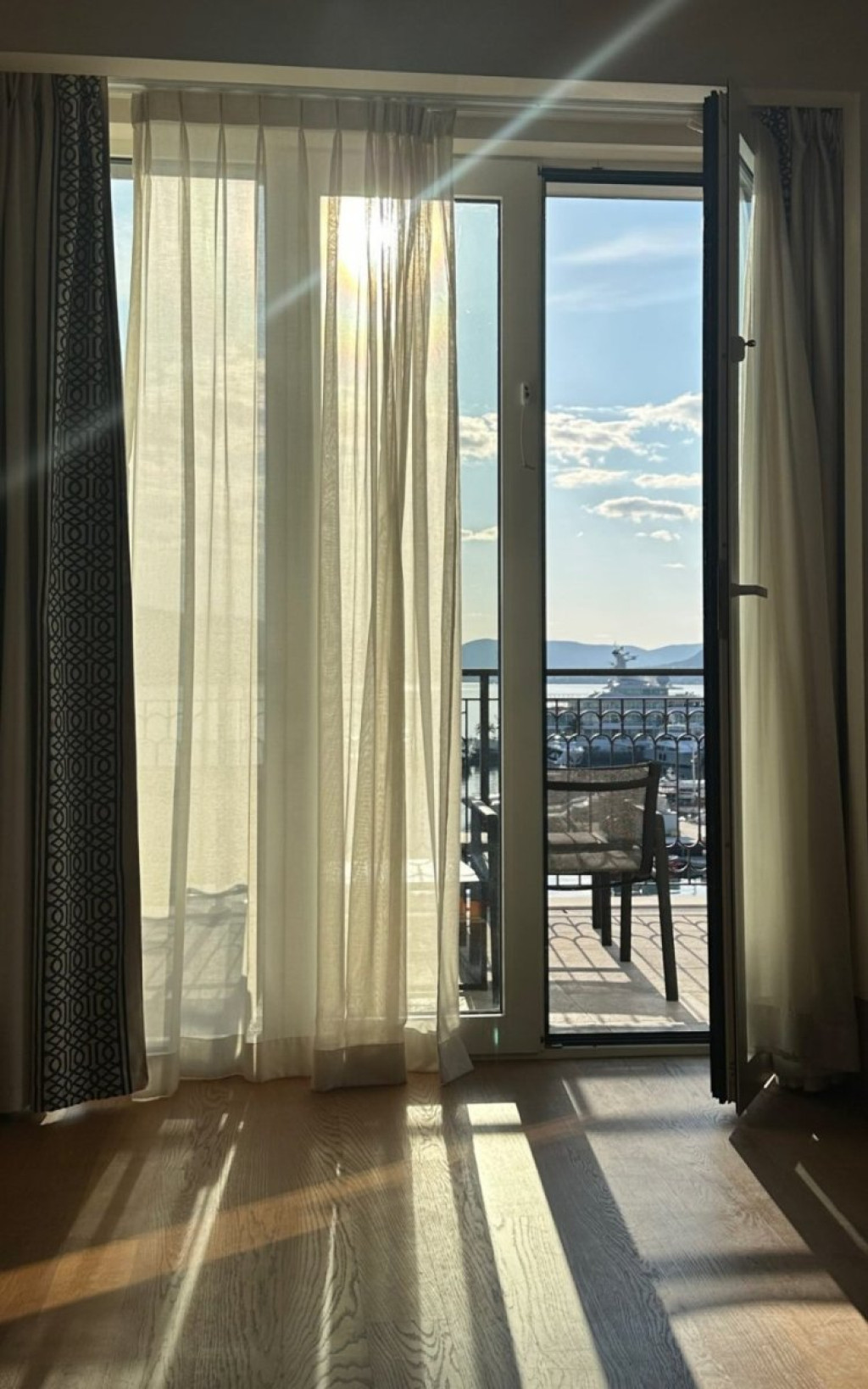 Četiri decenije mlađa devojka Lazara Ristovskog odsela je u luksuznom hotelu u Tivtu u sobi koja gleda na more, a fotografijama sa primorja pohvalila se na Instagramu.