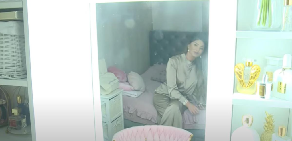 U dupleksu Ane Radulović dominiraju krem i zlatne boje, ali i njena omiljena ružičasta. Ono što je svima privuklo pažnju jeste zlatni ram u kojem je porodična fotografija sa Mirčetom i sinom.