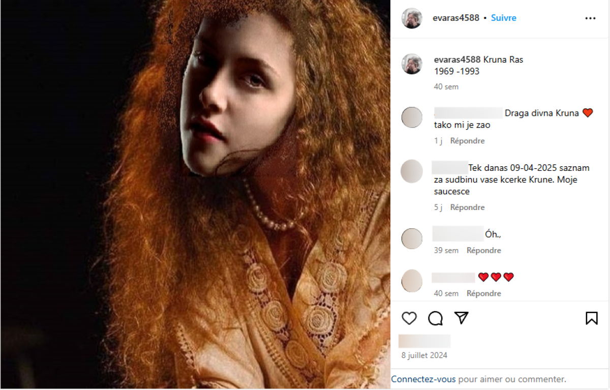 - Jedva sam uspela, uz pomoć ministra spoljnih poslova i još nekih ljudi, da deportujem Krunino telo i da je ovde sahranimo. Uz kovčeg smo dobili i nalaz obdukcije, francuska policija ništa nije otkrila i zapisali su da je umrla prirodnom smrću. Ja sam kasnije pričala nekim mojim kumovima da se ona tamo u Parizu možda upetljala u neke mračne stvari, politiku, i da je zato francuska policija napisala onako u izveštaju. Onda mi je moj kum Milenko Vučetić, pisac, rekao da pričam radnju kao iz filma "Nikita" i da to nema veze sa realnošću. Ne znam, tako je Bog hteo.