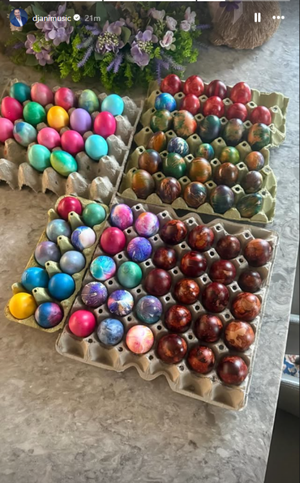 U domu Radiše Trajkovića Đanija vlada prava praznična atmosfera, a pevač je na društvenoj mreži Instagram podelio fotografiju sveže ofarbanih jaja. Kako se može videti oni su se poslužili i starim trikovima za farbanje jaja, ali i novim. Preko 20 jaja ofarbano je lukovinom, dok su ostala u nežnim bojama pa se mogu videti roze, plava i zelena jaja.