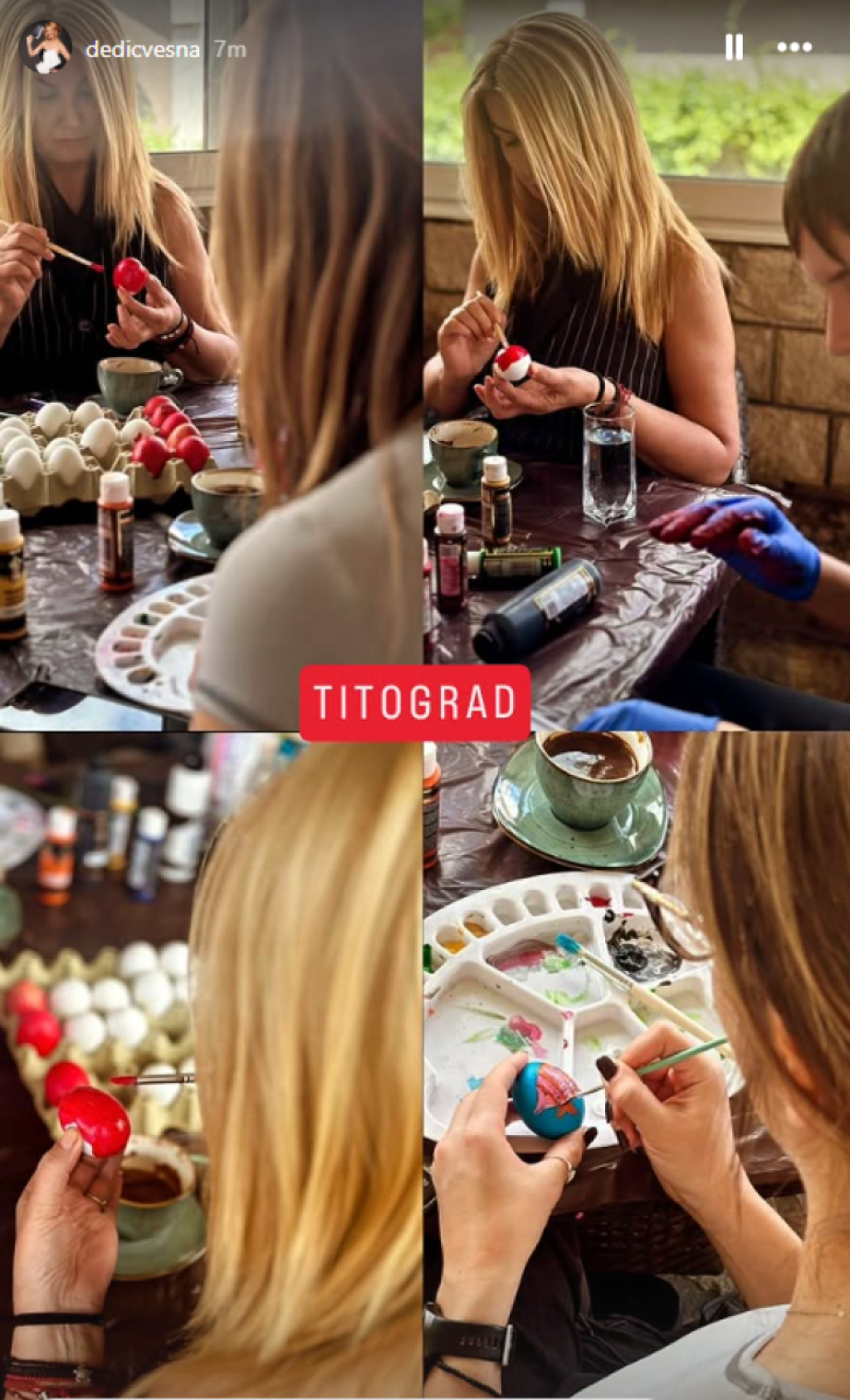 Vesna Dedić je na Veliki petak otišla u svoju rodnu Podgoricu i odmah po dolasku sa aerodroma, u porodičnu kuću, bacilase na posao. Voditeljka je sa četkicom i prirodnim bojama oslikala jaje i pokazala svoj talenat za crtanje.