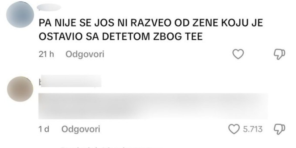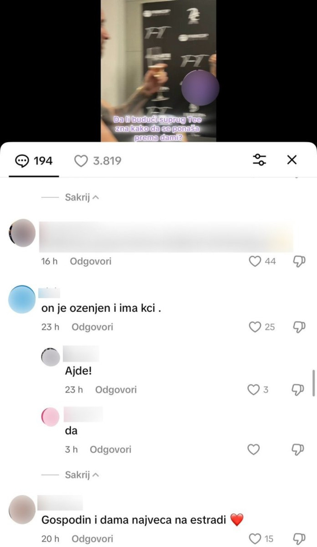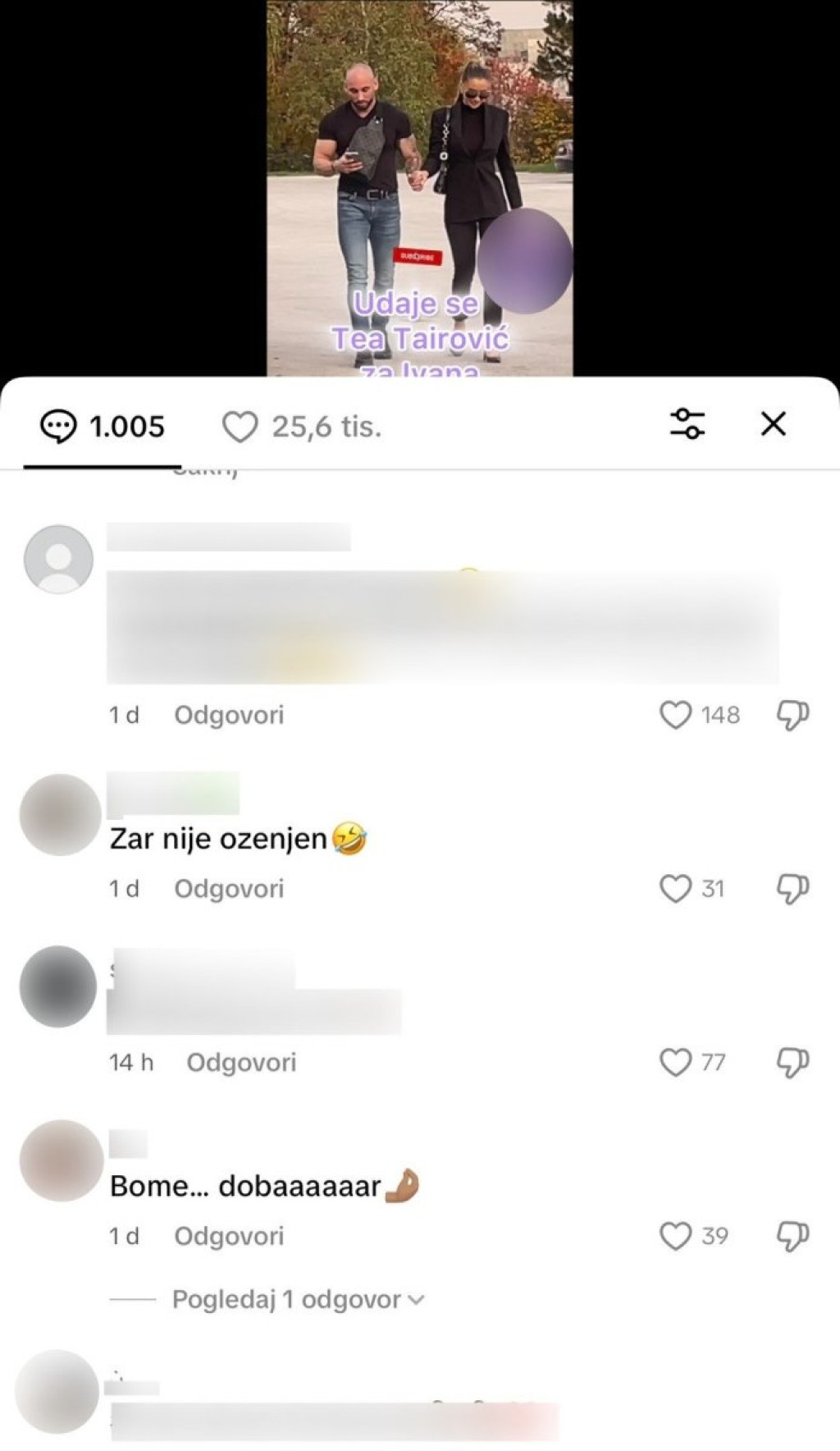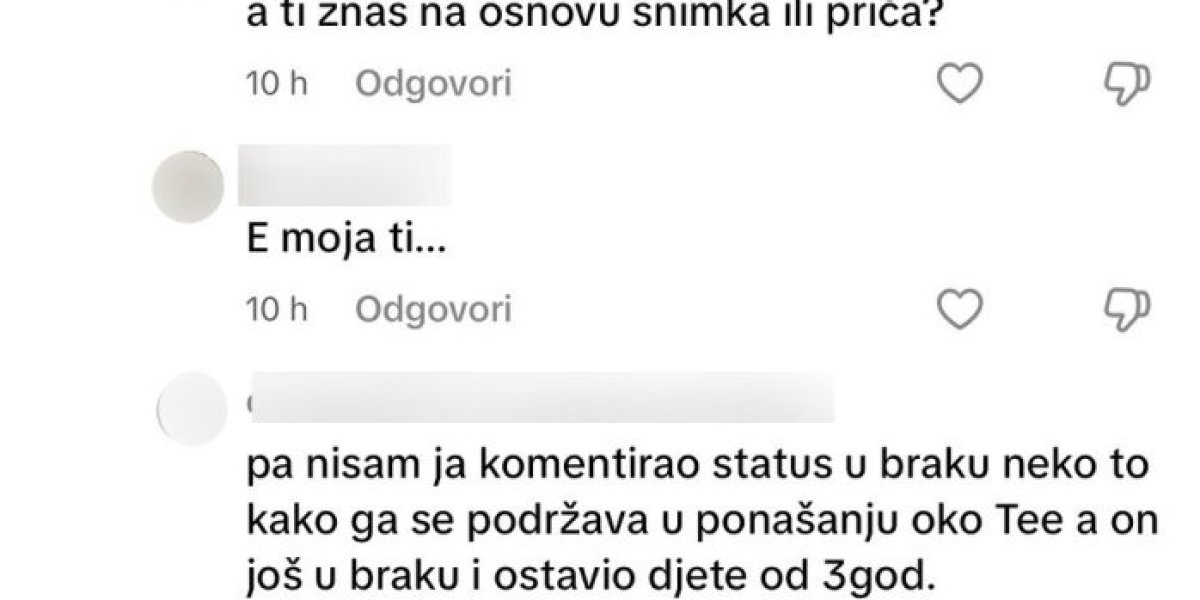 "On je bio oženjen i ima ćerku", "Čovek je bio u braku", "On je već bio oženjen, opet staje na ludi kamen?", samo su neki od mnogobrojnih komentara ispod jednog videa na kojem su Tea i Ivan.