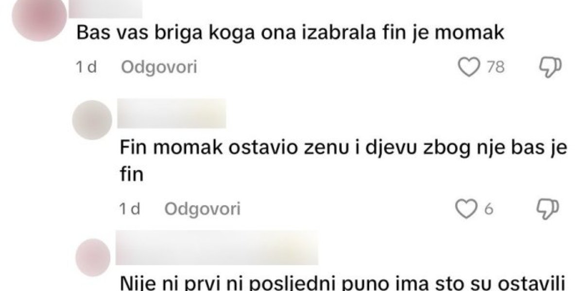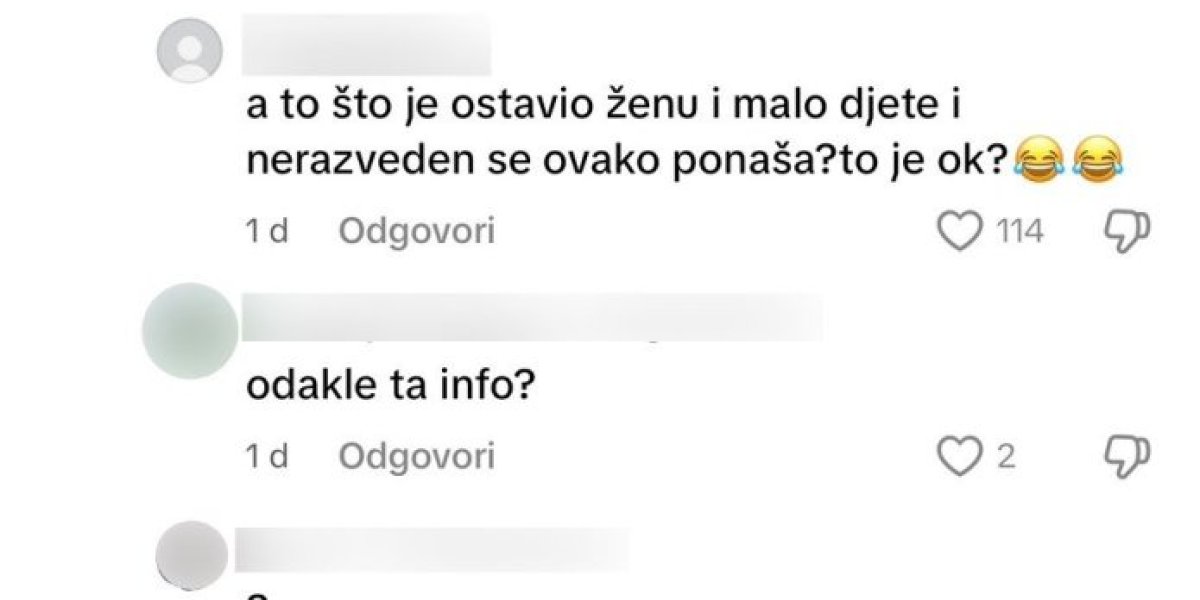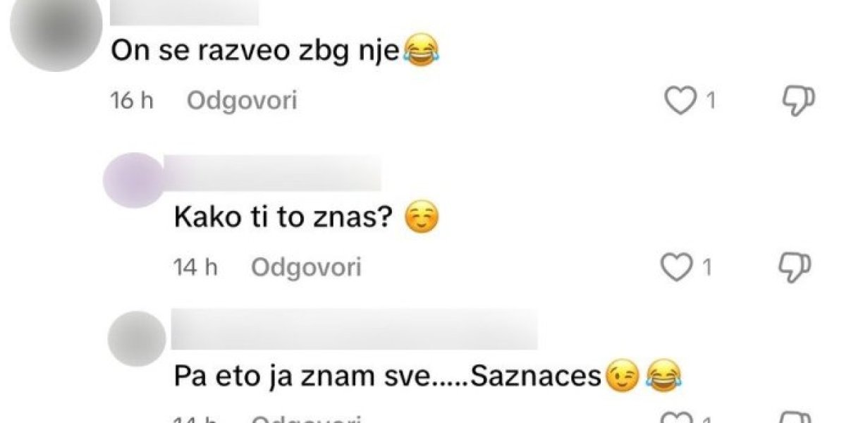 "Nije ni prvi, a ni poslednji! Ima puno njih koji su ostavljali žene i muževe. Pružila mu je šansu", "Imao je razlog sigurno da je ostavi. Niko ne ide od najbolje bez razloga", "Baš vas briga koga je ona izabrala, on je fin momak", "Šta ima od razvoda? Glupava papirologija. Znam mnoge koji su se uredno razveli, decu ne viđaju nikada, niti daju pare!"