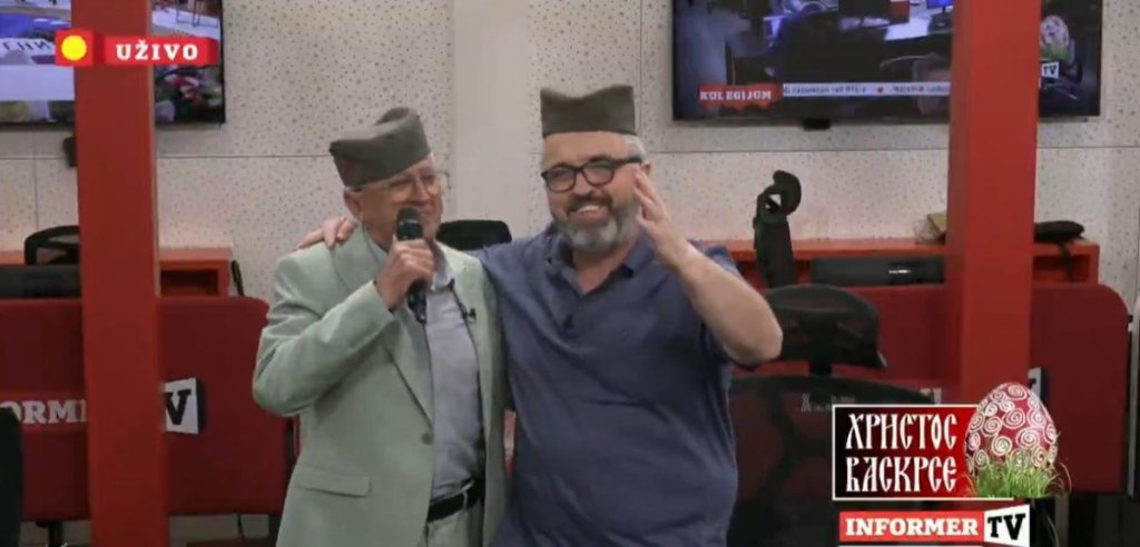 Ojdanić je glavnom uredniku Informera kako običaji nalažu doneo i vaskršnja jaja, a pre nego što je zapevao čuvenu pesmu "Šumadijo, Šumadijo" stavio je šajkaču.