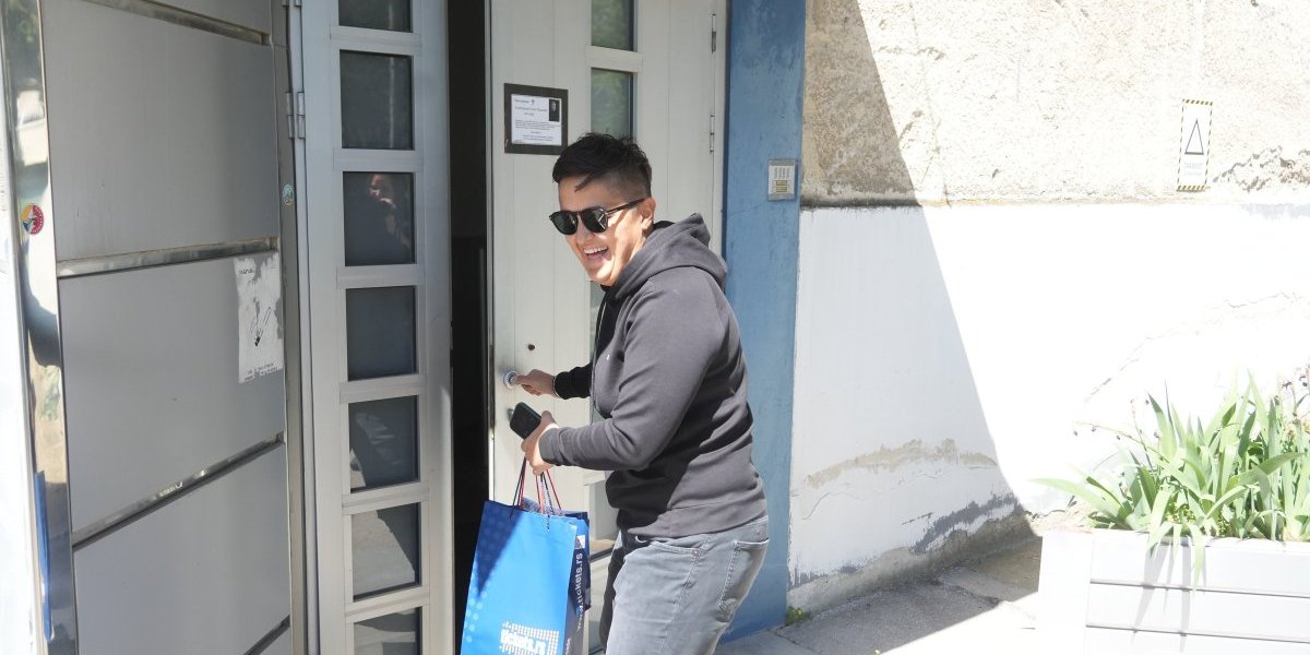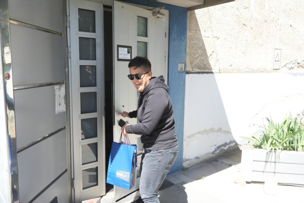 Marija je utrčala na snimanje, a onda je još jednom provirila na vrata kako bi ispozirala novinarima, te nastavila svojim putem.