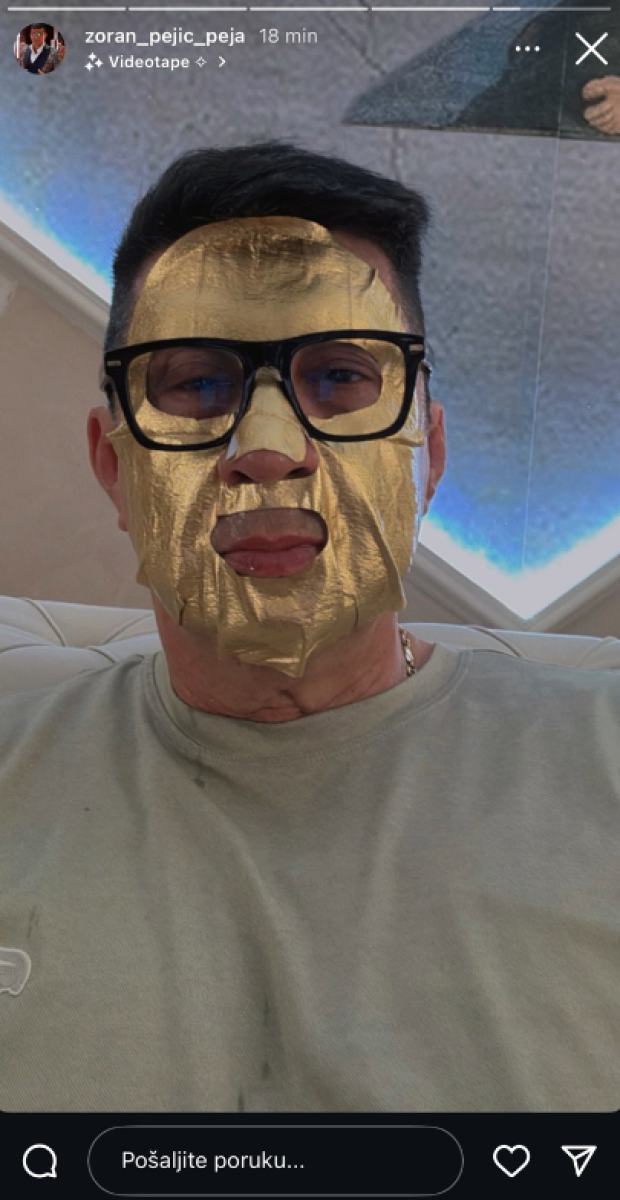 Naime, on je na lice stavio takozvanu zlatnu masku za lice, za kojom žene poslednjih meseci lude, jer kako kažu, čini čuda sa licem.