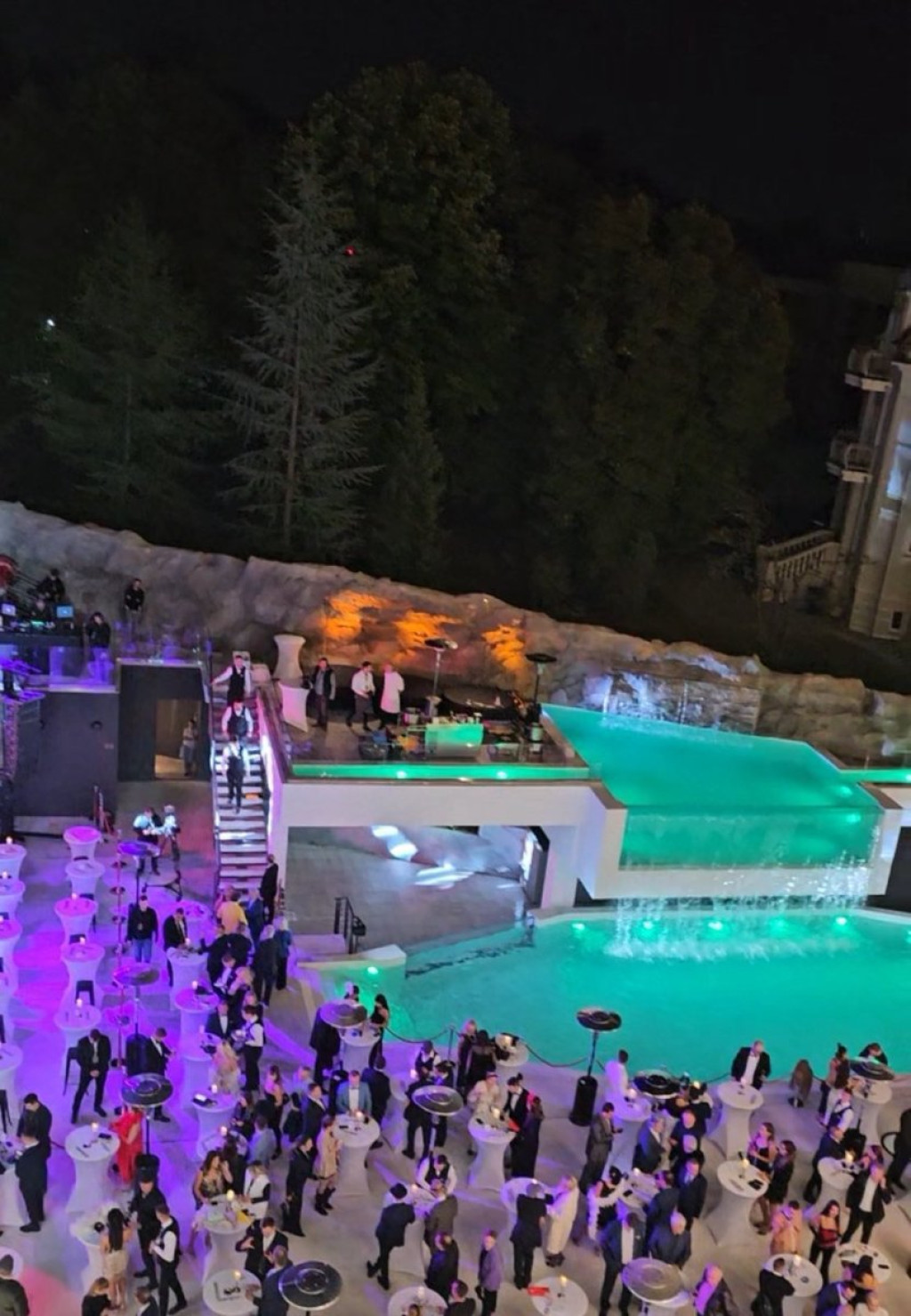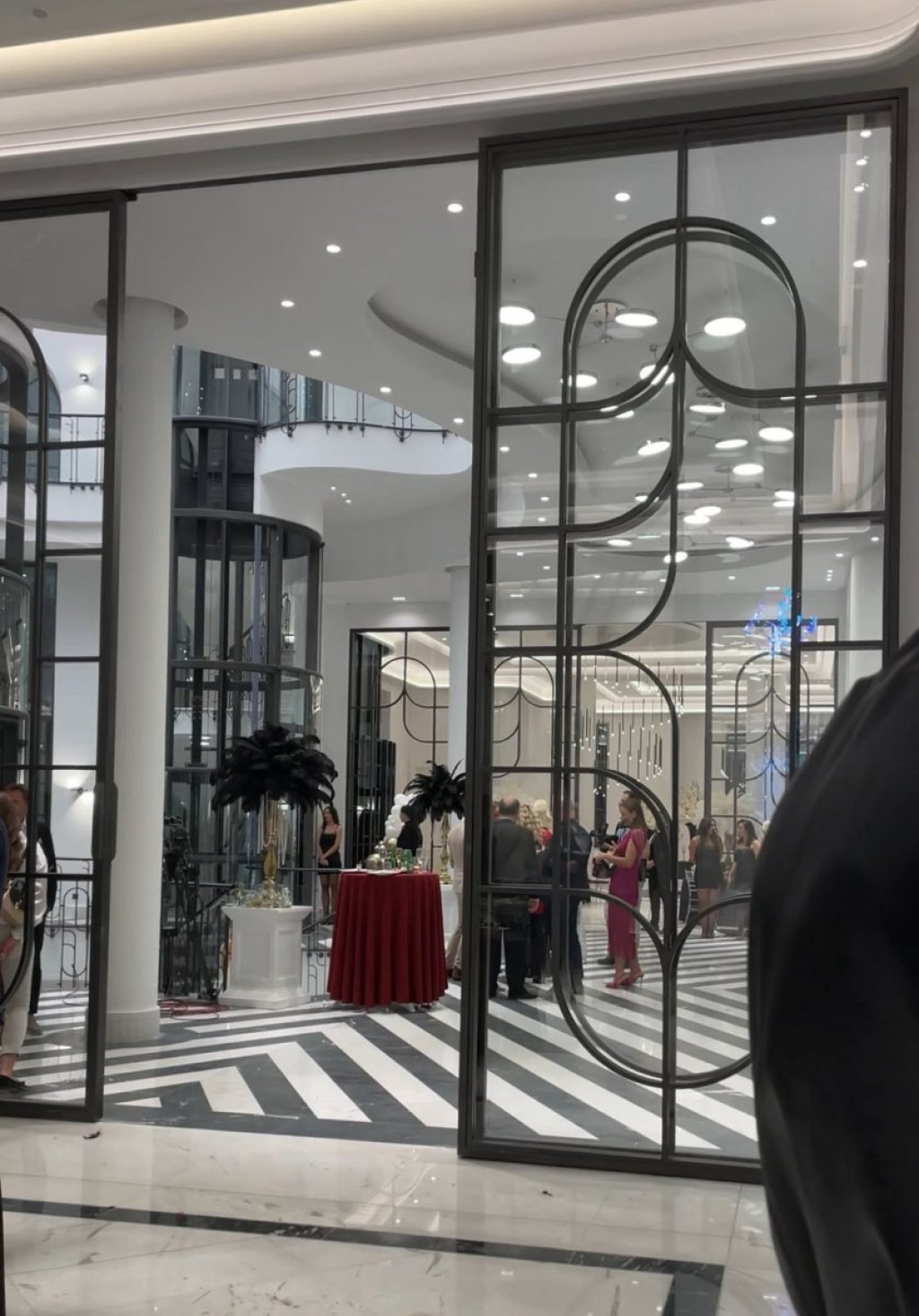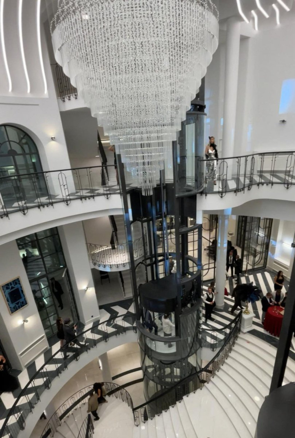 Središnji deo palate krase dva lifta koja su u staklu i impozantni luster, unikatno umetničko delo koje bi s ponosom moglo da stoji i u Bakingemskoj palati.