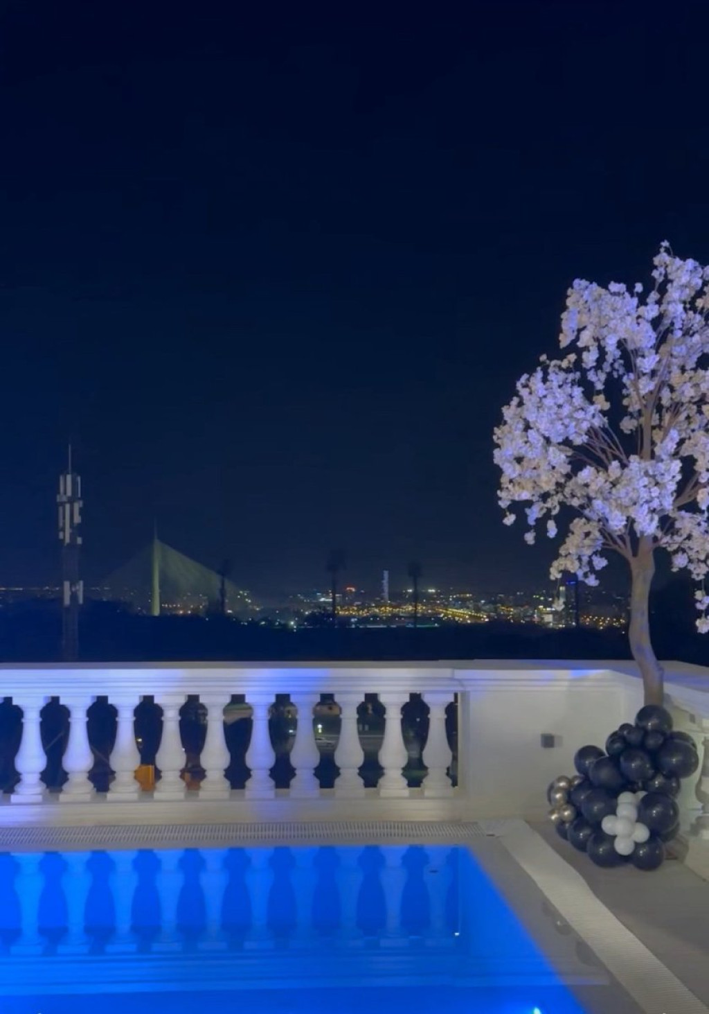 Visoki plafoni, ogromni prozori, enterijer u potpunosti obložen belim mermerom, multifunkcionalna dvorana, privatni studio, sopstveni noćni klub, fitnes centar i čak četiri bazena - sve to čini spektakularnu rezidenciju vlasnika Pinka.