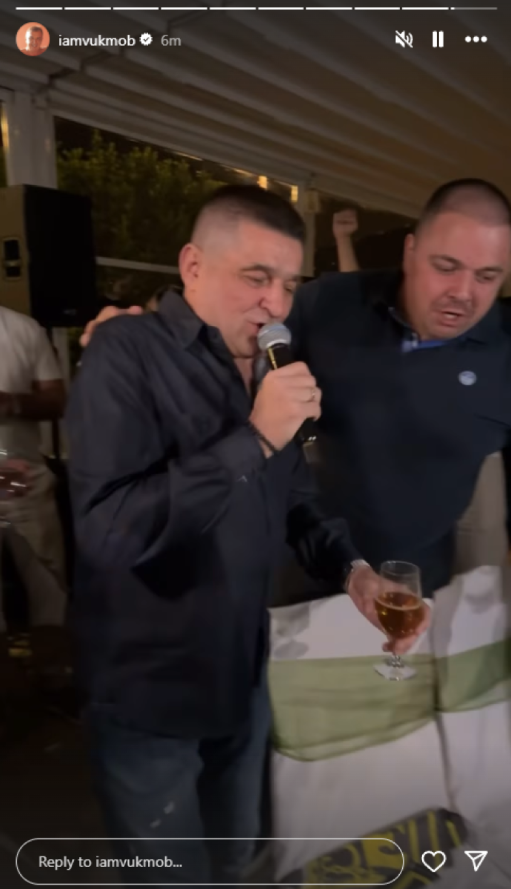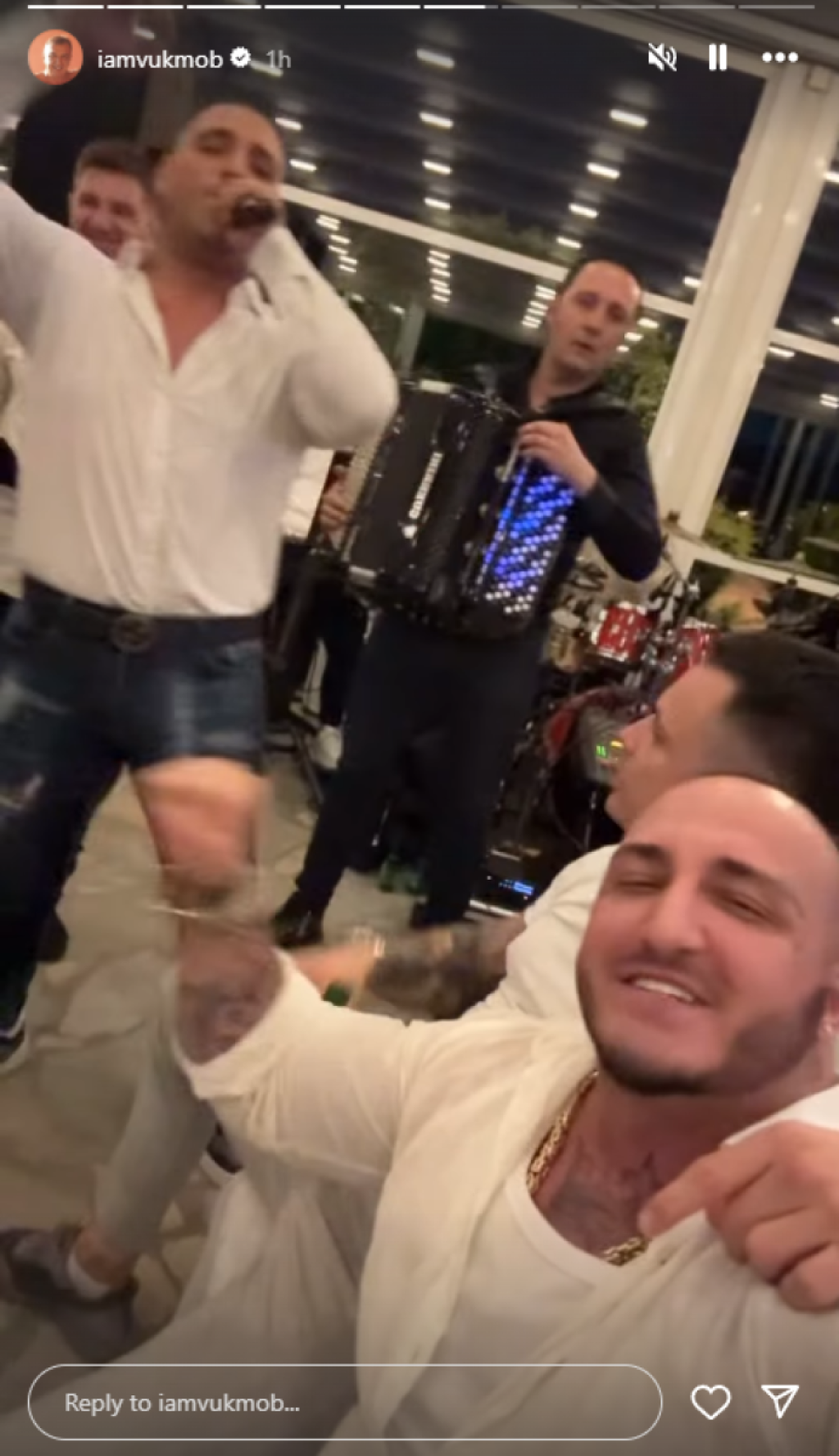 Mikrofona su se latili i Mirkovi prijatelji Darko Lazić, Sale Tropiko, ali i Baja Mali Knindža bez čijih pesama ne može da prođe ni jedno veselje. Pored roditelja i kumova najveseliji je bio Vuk Mob koji je delić atmosfere podelio na svom Instagram profilu.