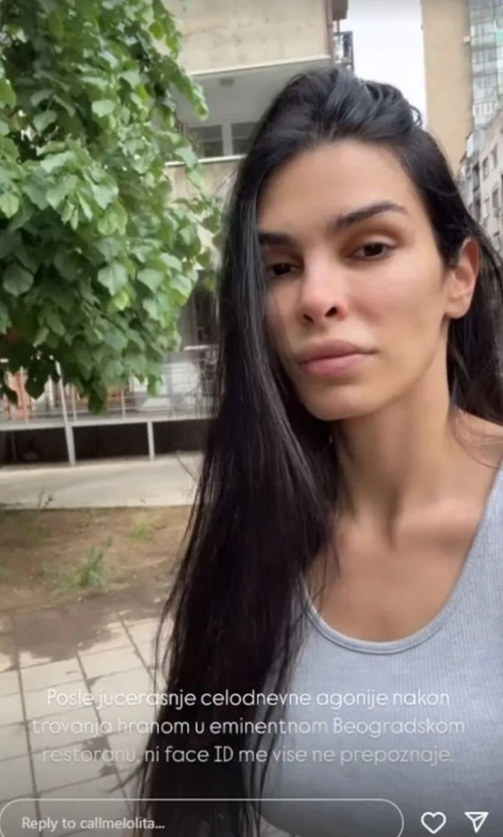 - Posle jučerašnje celodnevne agonije nakon trovanja hranom u eminentnom restoranu u Brogradu, ni "face ID" me više ne prepoznaje - napisala je manekenka aludirajući na to da ne može da otključa telefon sistemom prepoznavanja lica, a onda je otkrila i na koju hranu sumnja da joj je izazvala trovanje.