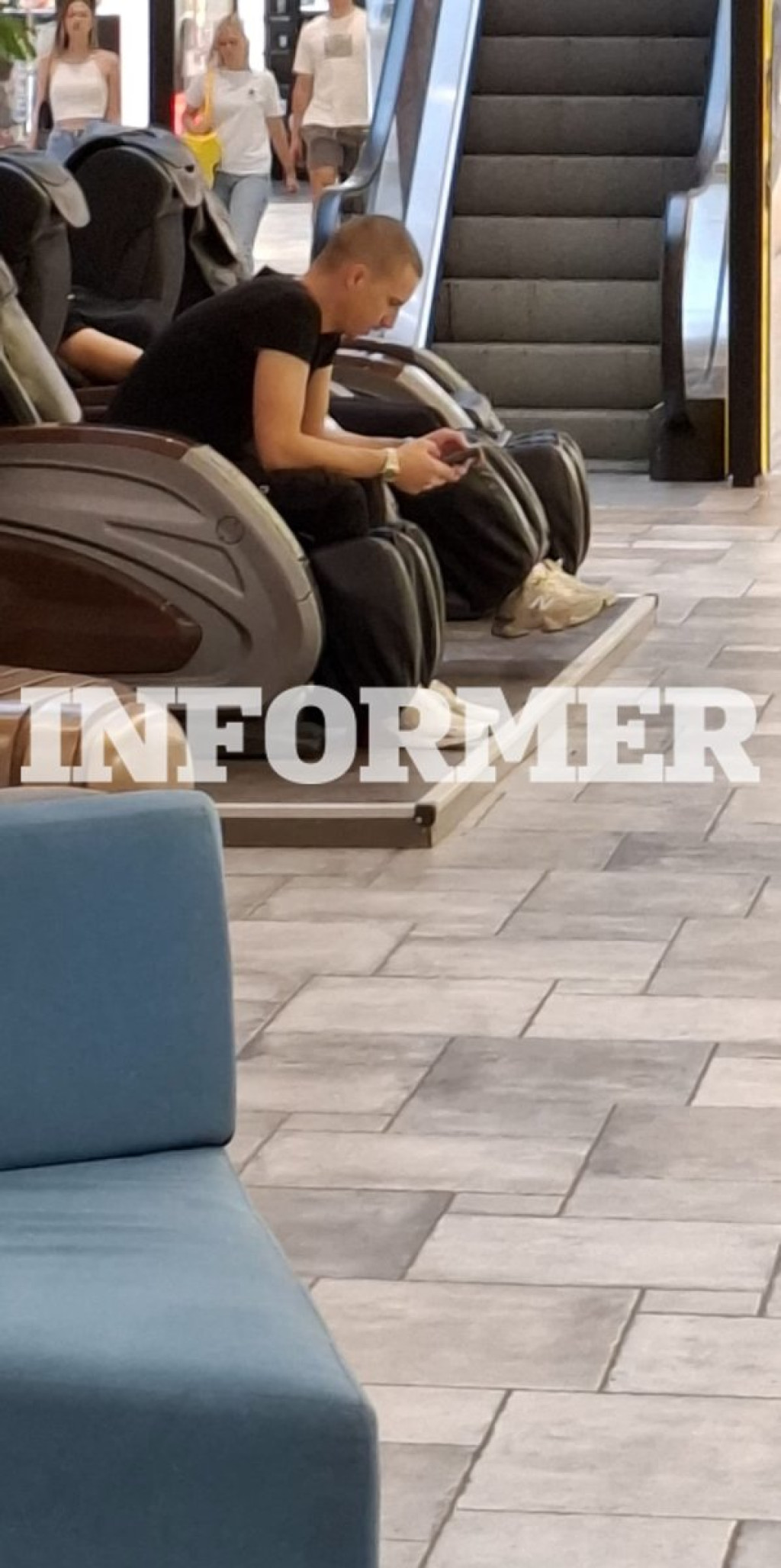 Dok je njegova draga nastavila šoping avanturu, Mitrović je opušteno sedeo i skrolovao po telefonu, uživajući u zasluženoj relaksaciji.