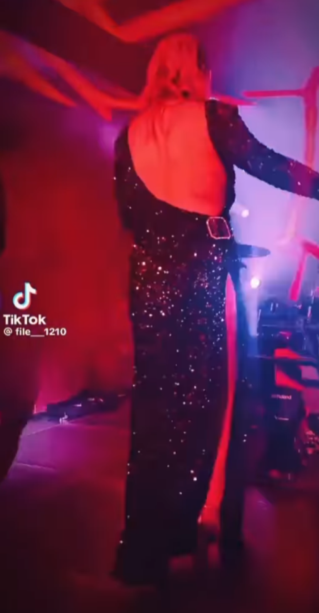 U pitanju je bila kreacija sa šljokicama, koja je u predelu grudi bila potpuno zatvorena, dok su joj je leđa bila skroz gola. Međutim, to nije sve. Haljina je imala i dubok šlic, koji je išao sve do kuka, pa Anina zategnuta butkica nije mogla proći neopaženo.