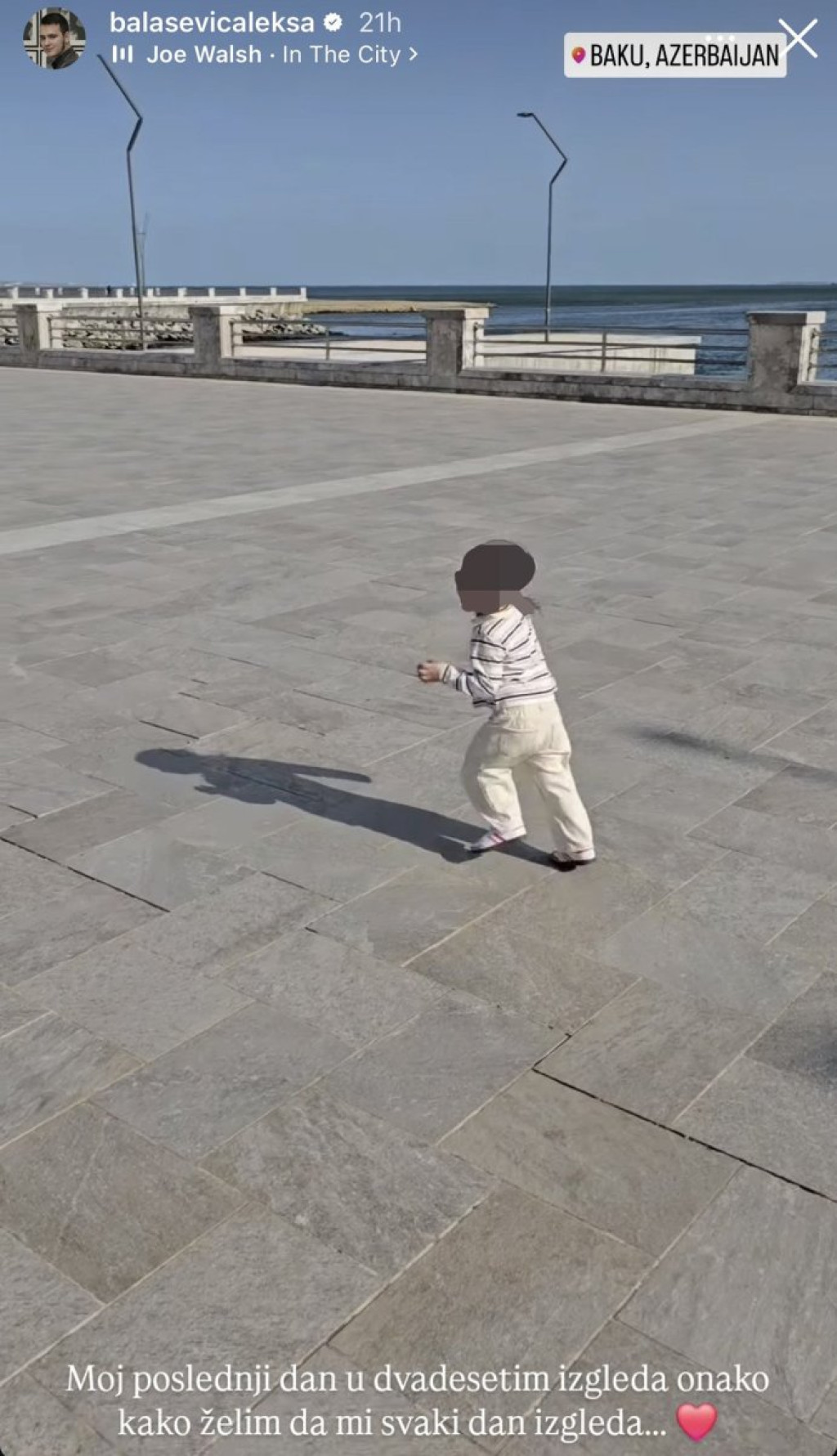 - Moj poslednji dan u dvadesetim izgleda onako kako želim da mi svaki dan izgleda - poručio je Aleksa Balašević koji je u tom trenutku snimao ćerkicu kako trči i uživa pored njega.