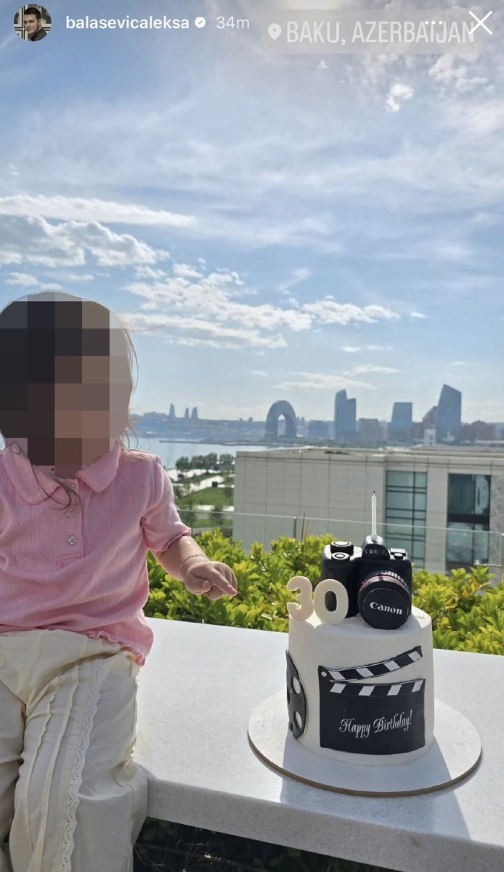 Aleksa Balašević rođendan je proslavio u Bakuu, u Azerbejdžanu, a uslikao je i tortu koja na vrhu ima foto aparat, a na njoj je i klapa na kojoj je ispisano "srećan rođendan" na engleskom jeziku, kao i svećice u broju 30.