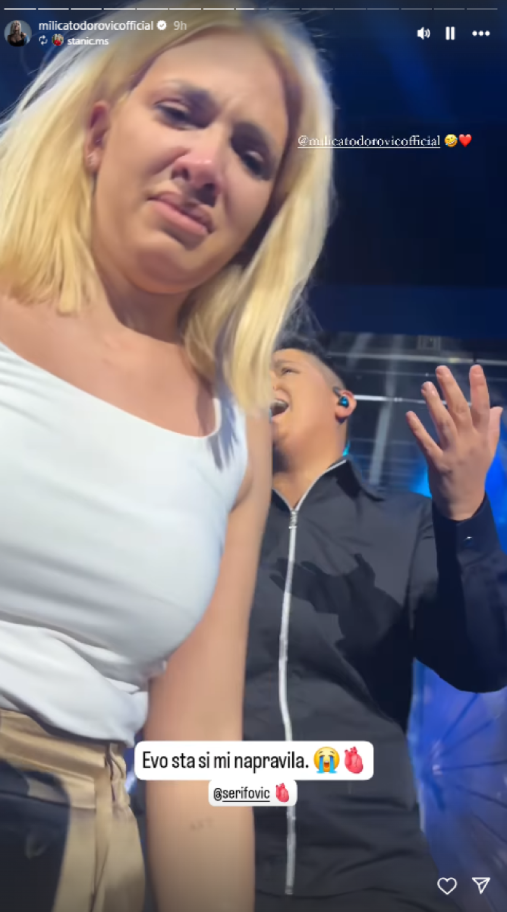 Dobro raspoloženu i veselu Milicu već na prve taktove pesme "Deo prošlosti" emocije su potpuno savladale. Počela je da plače i briše suze maramicom, a onda je grcajući prišla Mariji da je zagrli i poljubi.