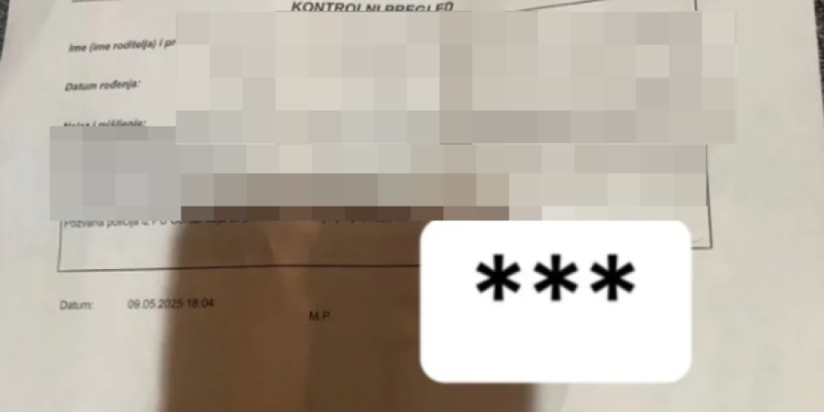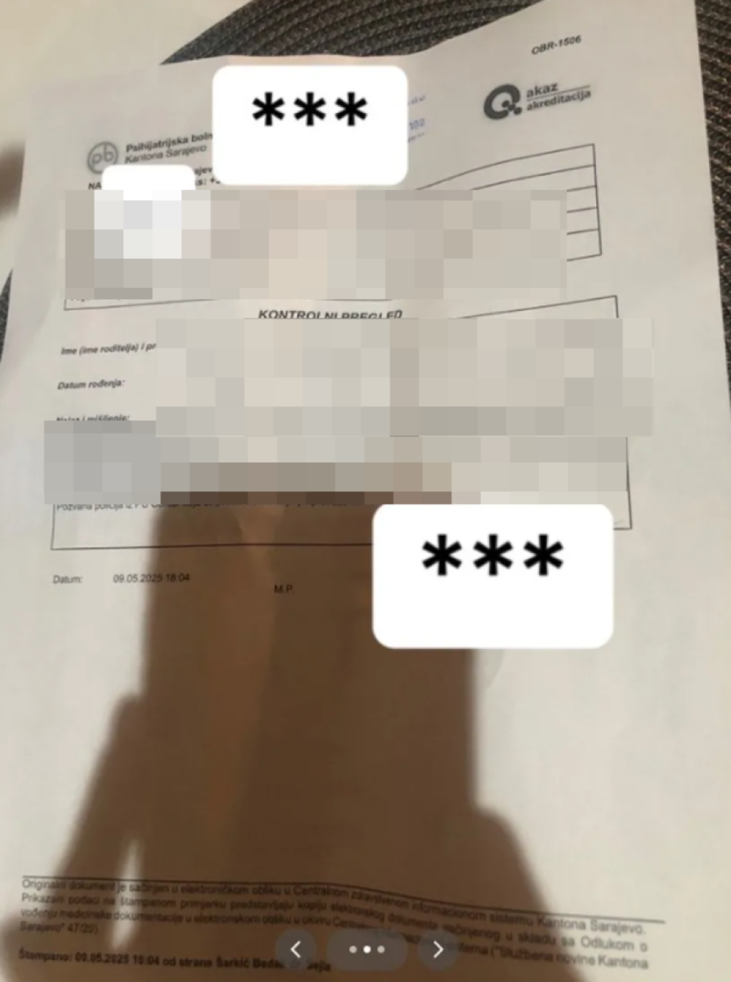 Na društvenim mrežama pojavio se dokument izdat devetog maja, koji potvrđuje da je Hećo primljena u Urgentni centar vidno uznemirena i dezorijentisana.