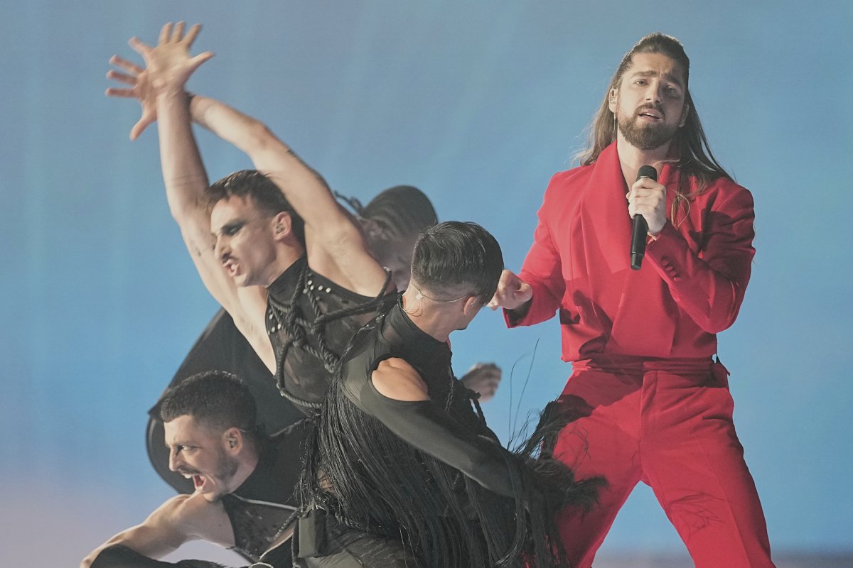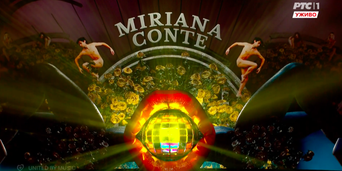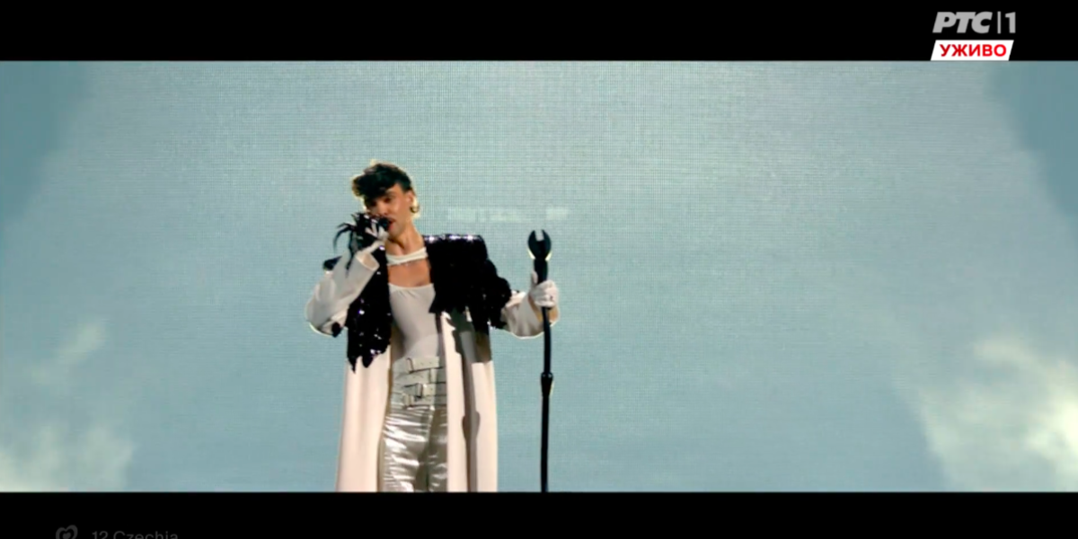 22:14 Na redu je Češka sa pesmom Kiss, kiss. Ova pesma govori o unutrašnjoj transformaciji i slavljenju novog početka. Međutim, njegov mikrofon je privukao najveću pažnju.