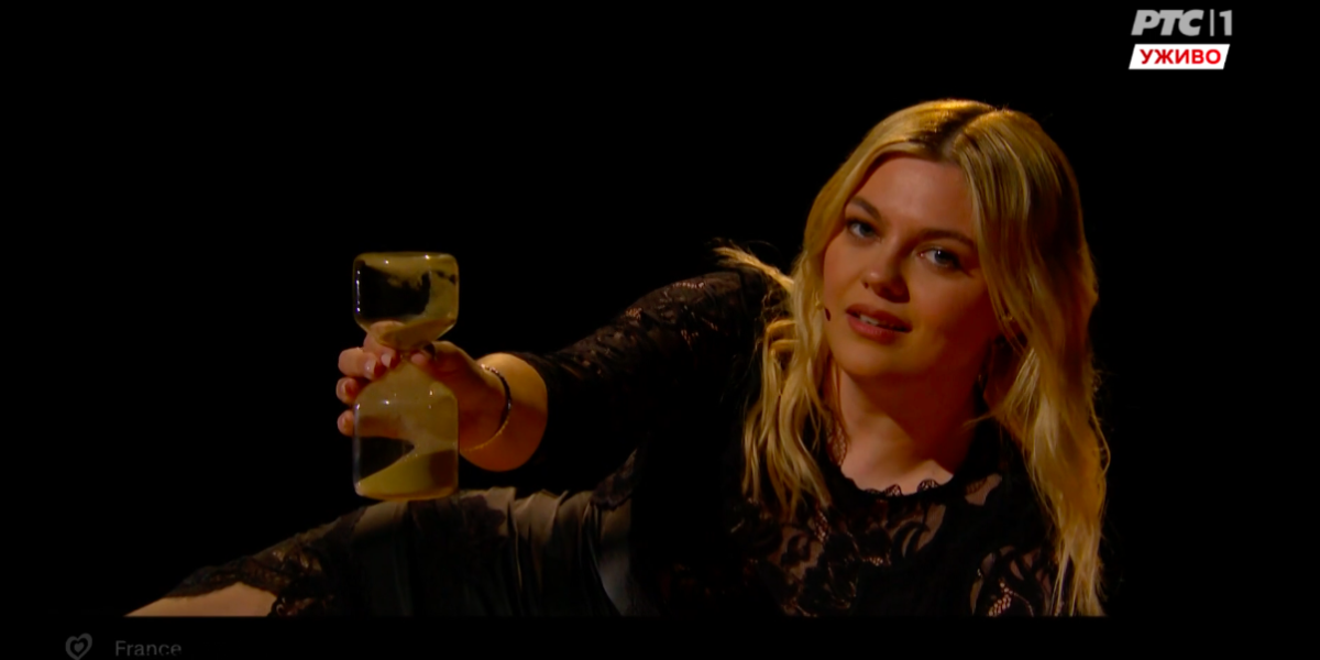 22:03 Na veliku scenu Evrovizije izasla je i Francuska. Međutim, kao i za Ujedinjeno Kraljevstvo, tako i za njih važi - nema glasanja za ovu zemlju. Pesmu Maman je posvetila pokojnoj majci koja je preminula kada je pevačica imala samo 17 godina.
