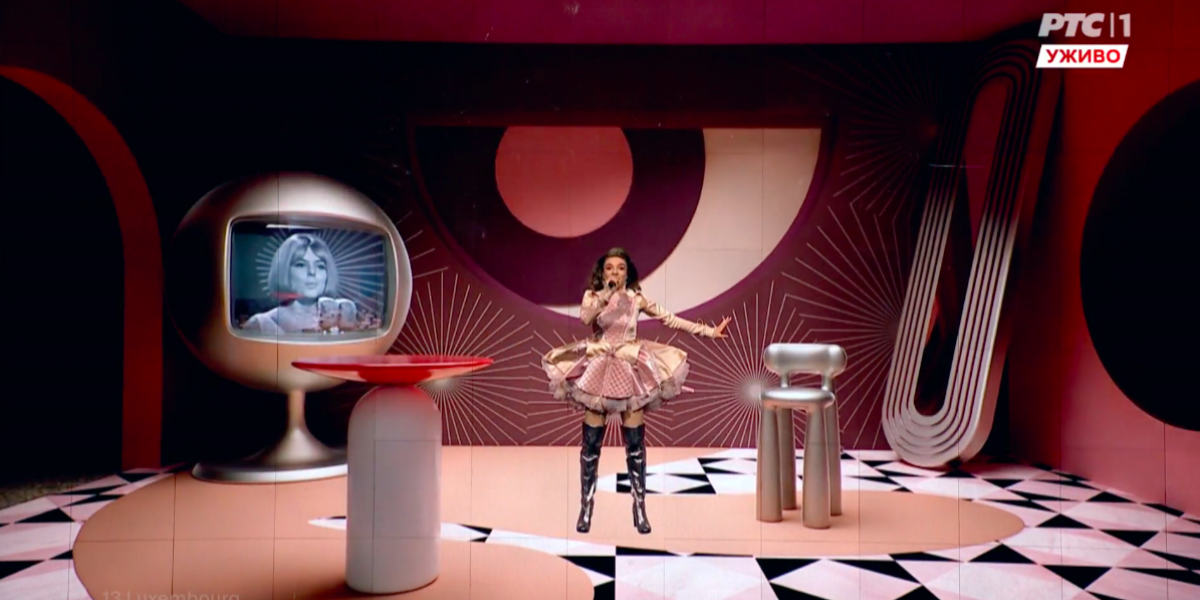 22:18 13. zemlja po redu je Luksemburg. Njih predstavlja Laura Torn, sa pesmom La poupée monte le son. Međutim, za deo njenog nastupa kritičari kažu da je bleda kopija srpskog predstavnika.