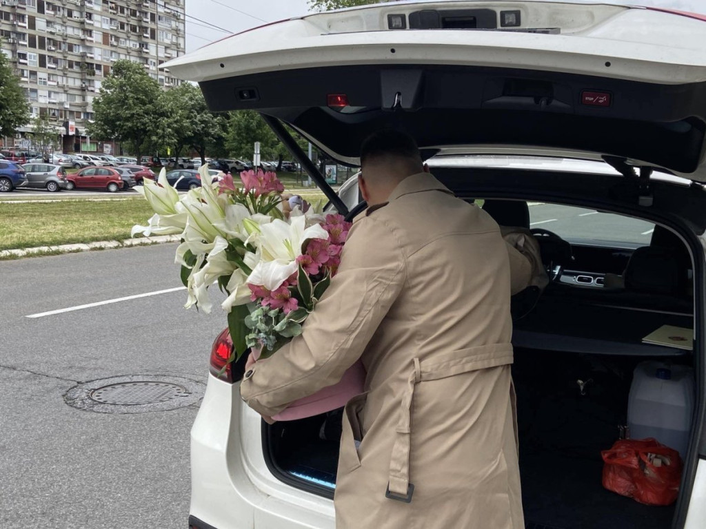 Perućica je na jednu privatnu kliniku stigao sav ozaren, držeći u rukama veliki buket cveća. Tom prilikom.