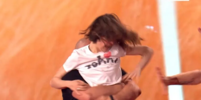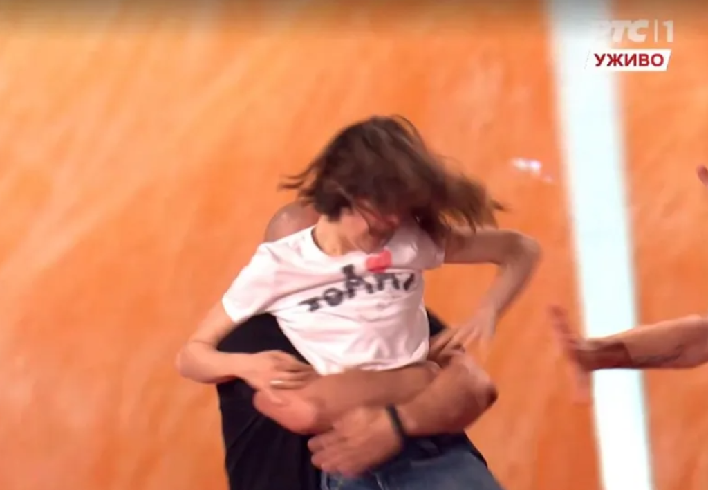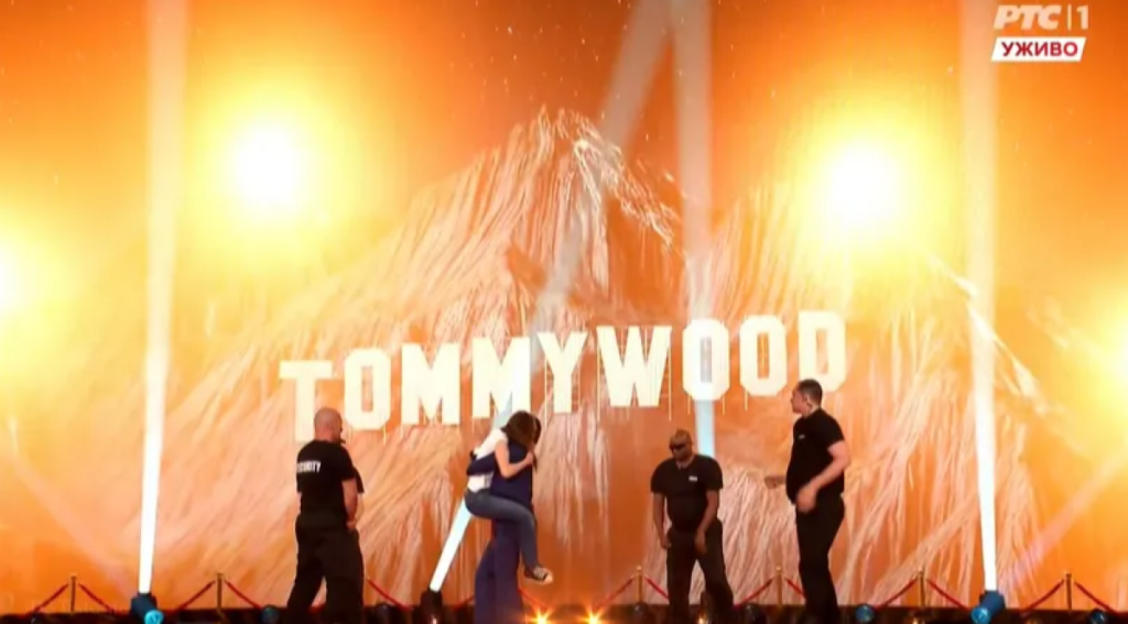 Naime, Tomija sve vreme čuva obezbeđenje, a u jednom trenutku na scenu izleće devojka iz publike kako bi zaigrala sa njim.