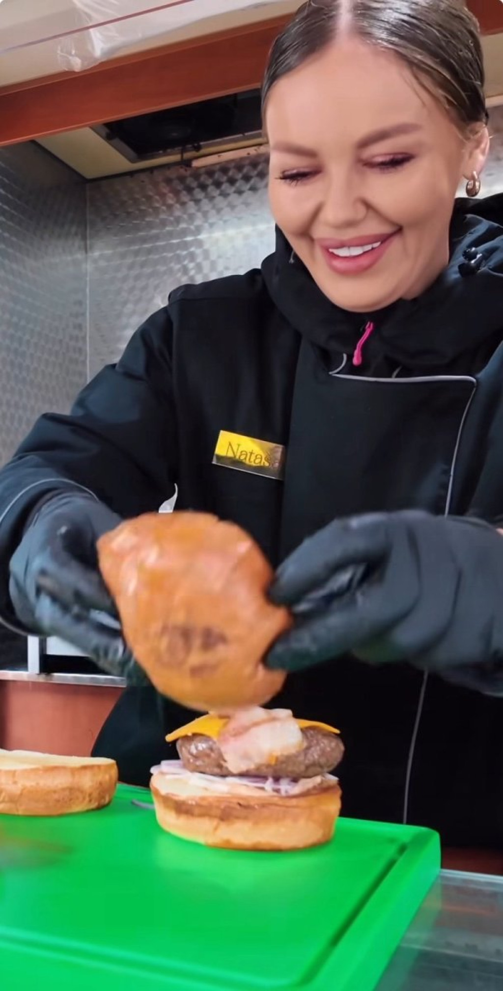 Naime, Nataša je uhvaćena kako radi rame uz rame sa radnicima. Ona je pripremala burgere kao da to radi ceo život! Daleko od luksuza, samo kecelja, roštilj i osmeh!