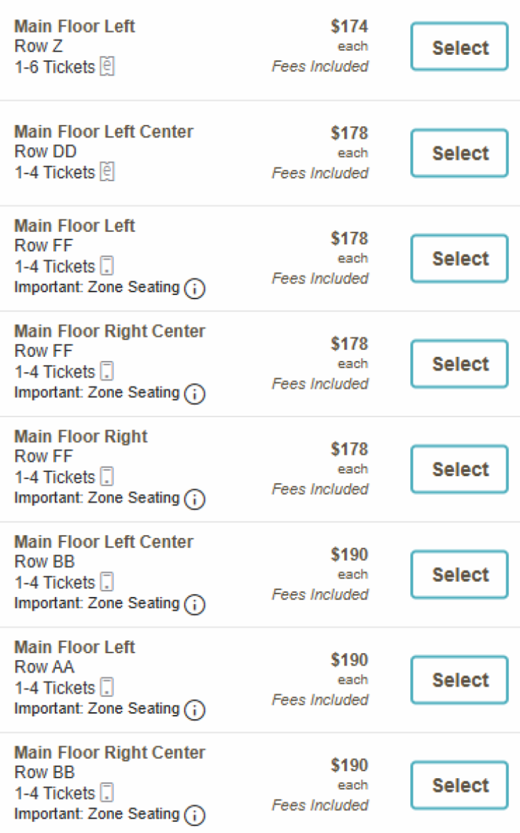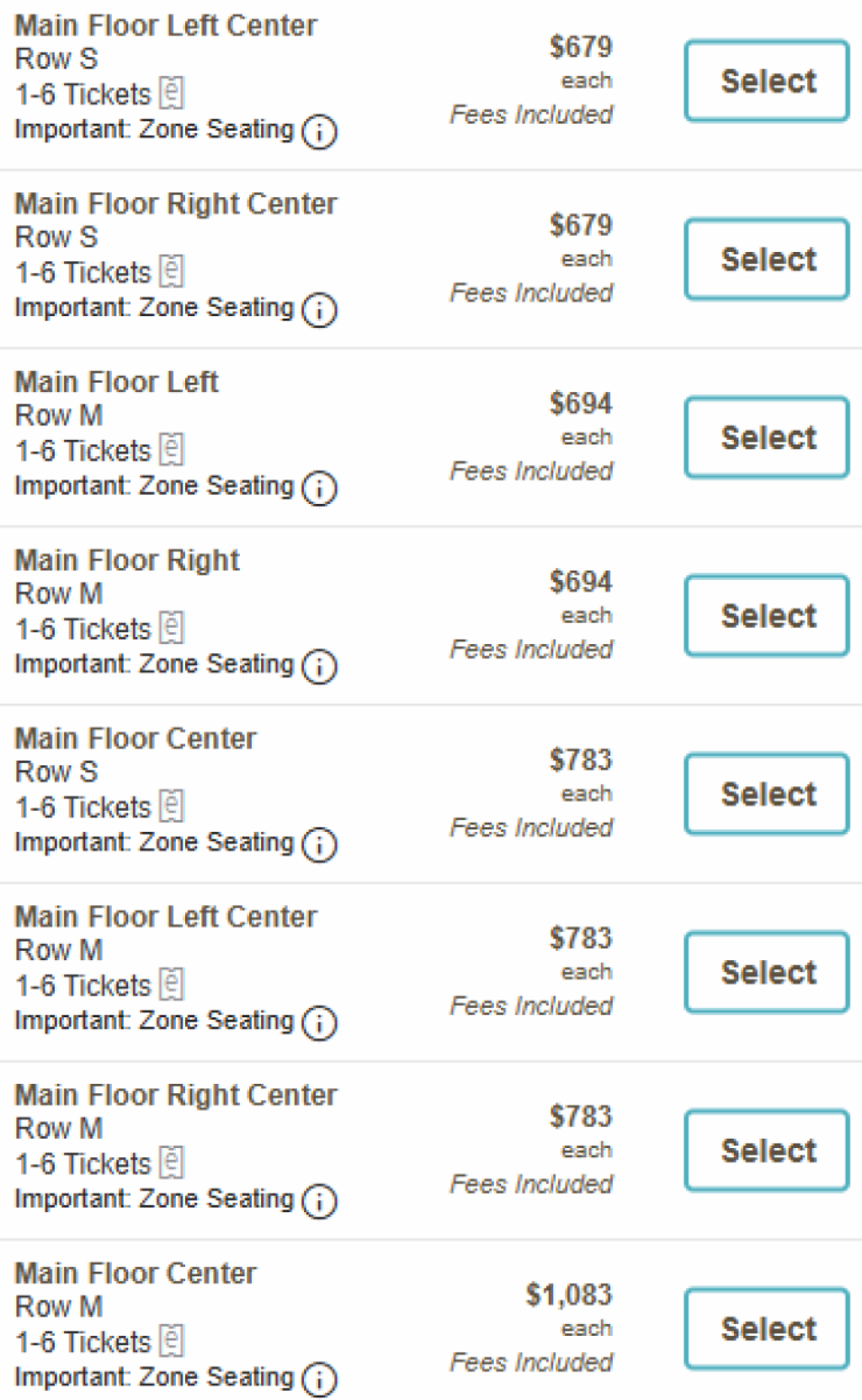 Na specijalizovanom sajtu za preprodaju prodaju karata dostupne su ulaznice po različitim cenama – 170, 200, 600, 700, pa i 1.000 dolara. Najskuplje ulaznice podrazumevaju sedenje tik uz binu, za banket stolovima za šest osoba.