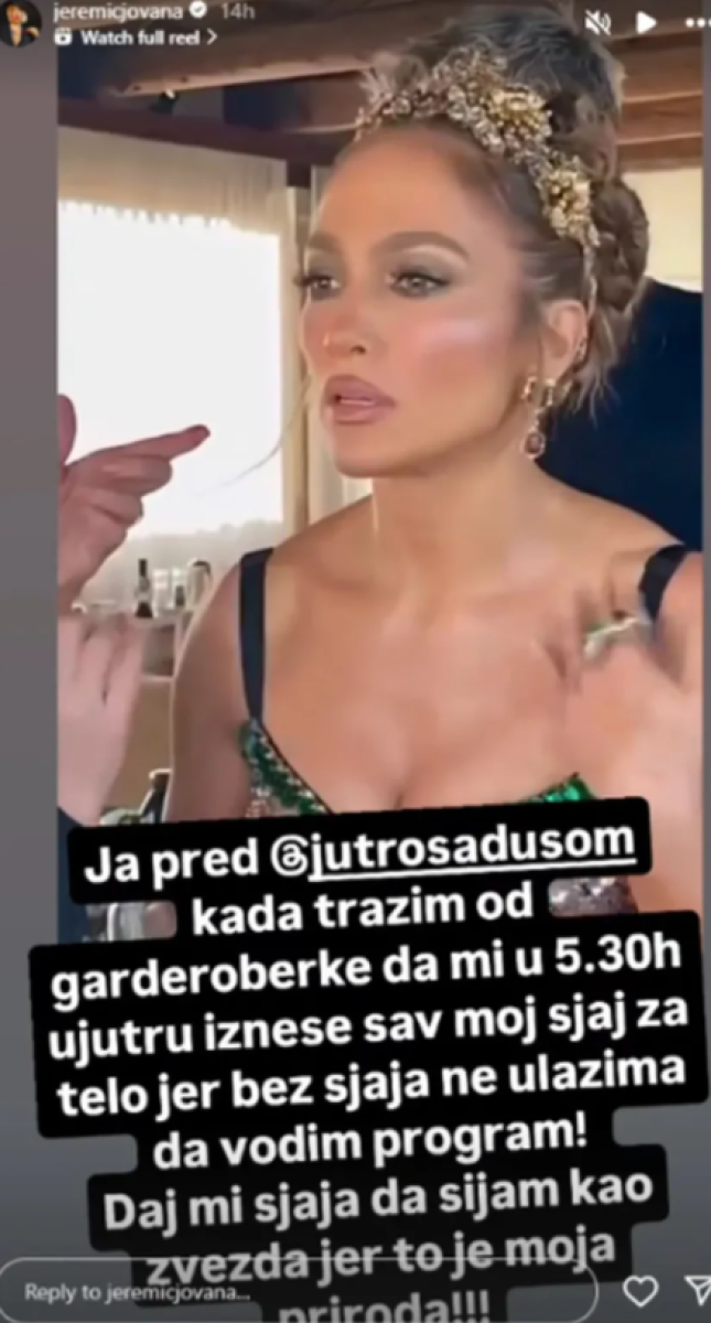 Naime, ona je podelila snimak na kom se vidi kako se svetski poznata pevačica Dženifer Lopez priprema za izlazak pred publiku, a ono što je primetno jeste to da ona na sebi ima mnogo sjaja za telo, što je Jeremićka priznala da i ona sama obožava da koristi.