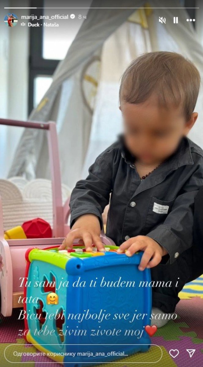 - Tu sam ja da ti budem mama i tata. Biću tebi najbolje sve jer samo za tebe živim živote moj - napisala je ona.