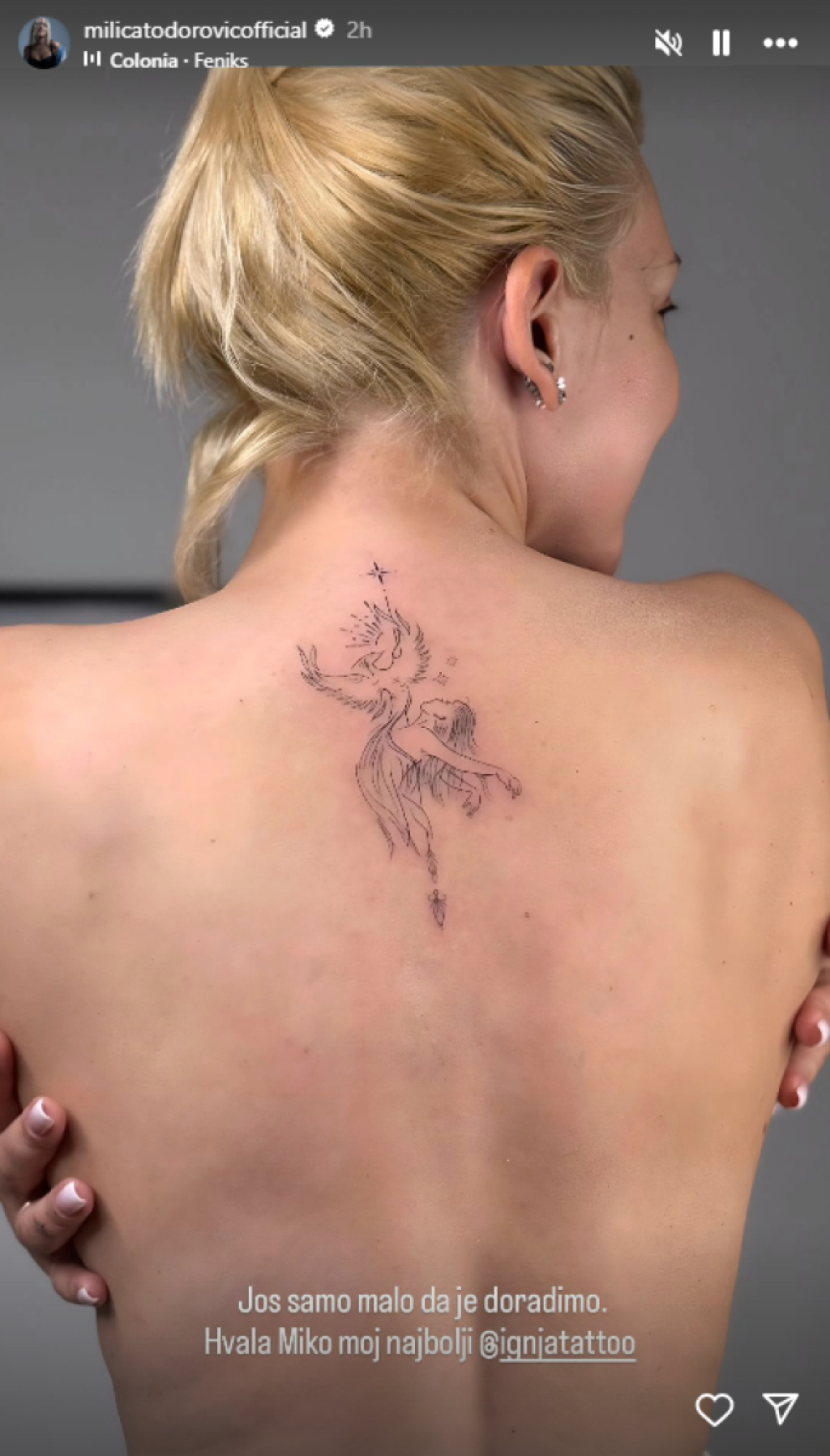 Pevačica često ističe kako je veliki borac i kako se posle svakog poraza podigne sve jača, te je ovu tetovažu istetovitala baš i zbog toga. Ona je istetovirala Feniksa što znači da je jaka kao Feniks, pa je uz ovaj status stavila i sledeće stihove: