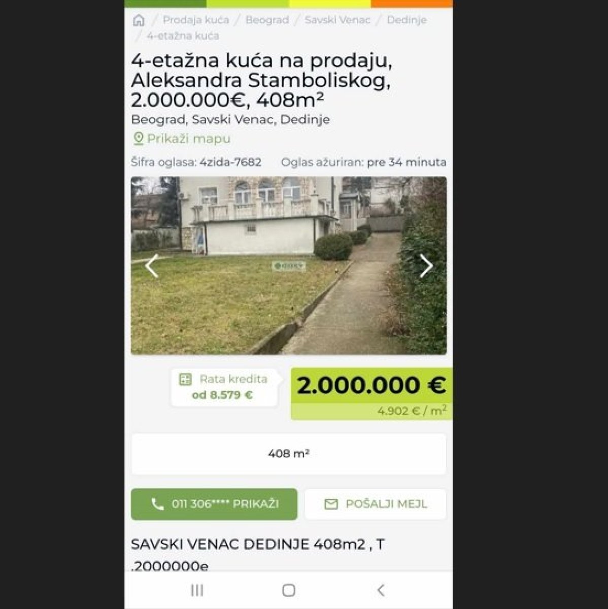 Luksuzna kuća u blizini stadiona "Rajko Mitić", samo stotinak metara od vile u Ljutice Bogdana gde trenutno živi Ceca Ražnatović s porodicom, nedavno je bila na oglasima za prodaju, a za nju su tražili dva miliona evra. Međutim, vlasnica je iznenada povukla oglas i odustala od prodaje!