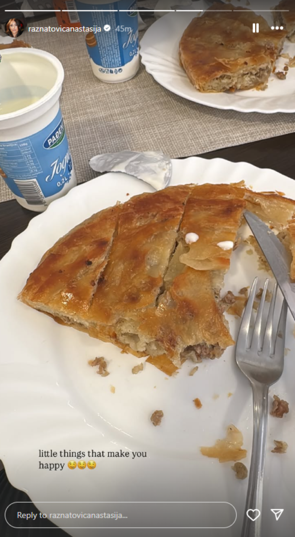 Anastasija je uz to dodala koliko uživa u hrani ovog tipa.