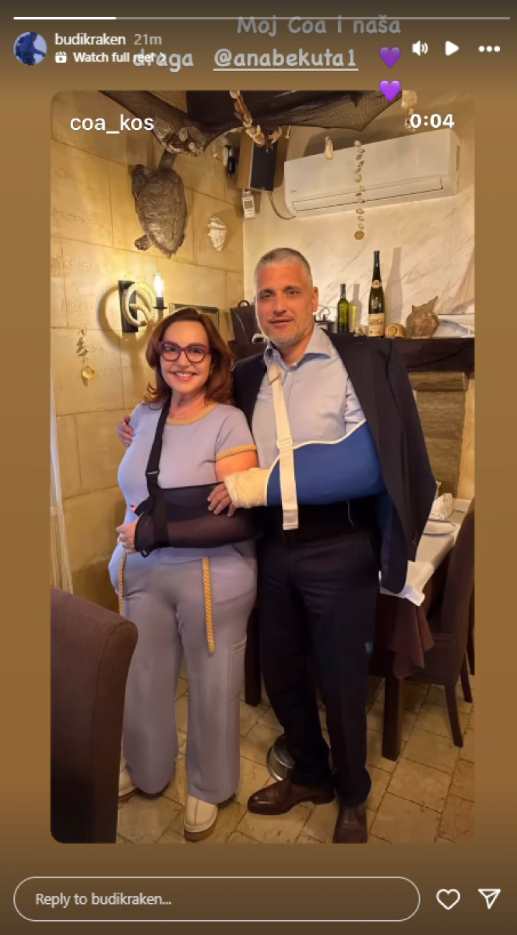 Pevačica se pojavila na rođendanu koleginice Branke Sovrlić u jednom elitnom beogradskom restoranu, a svi su bili iznenađeni videvši je ponovo sa longetom na ruci. Bekuta je početkom godine doživela nezgodu tokom nastupa na jednom privatnom slavlju zbog čega je završila u gipsu.